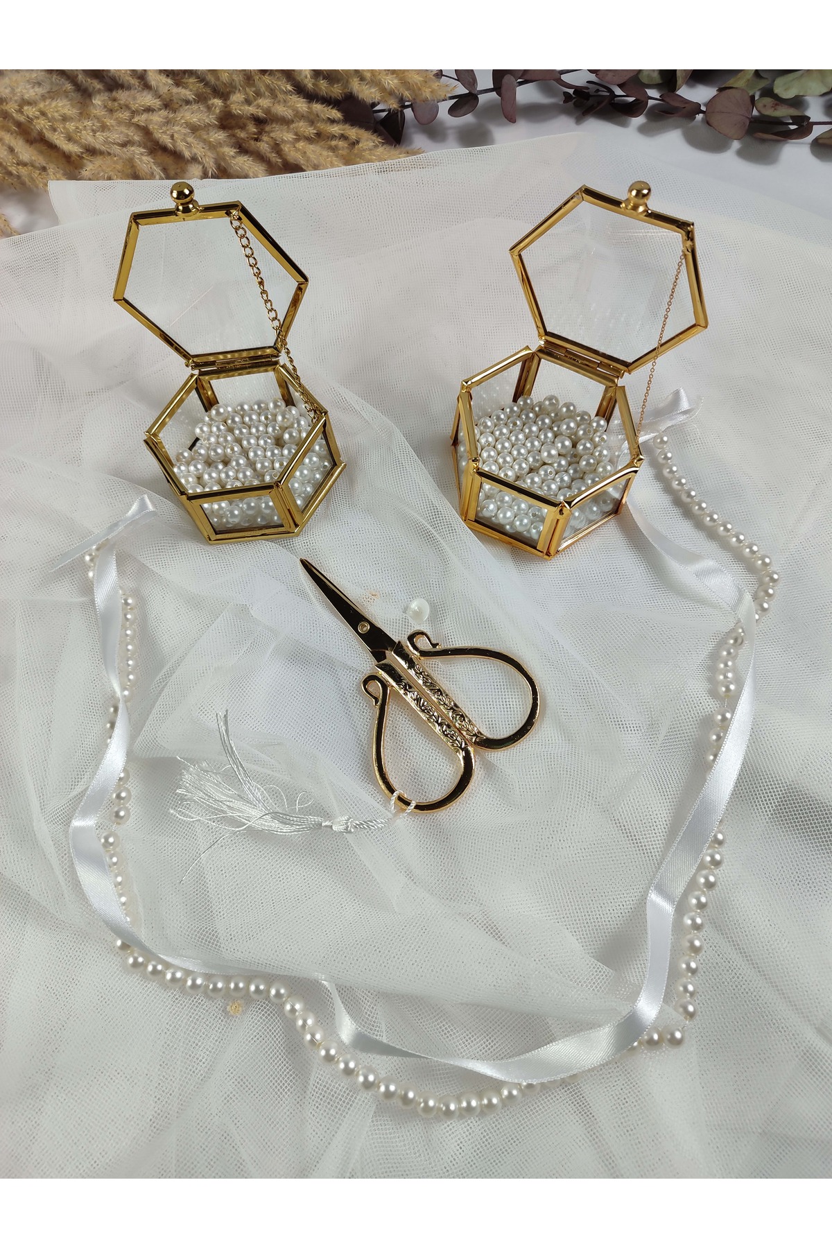 I?ncili Dökülen Kurdele - Sekizgen Yüzüklük - D Makas - Söz Tepsisi Aksesuarları