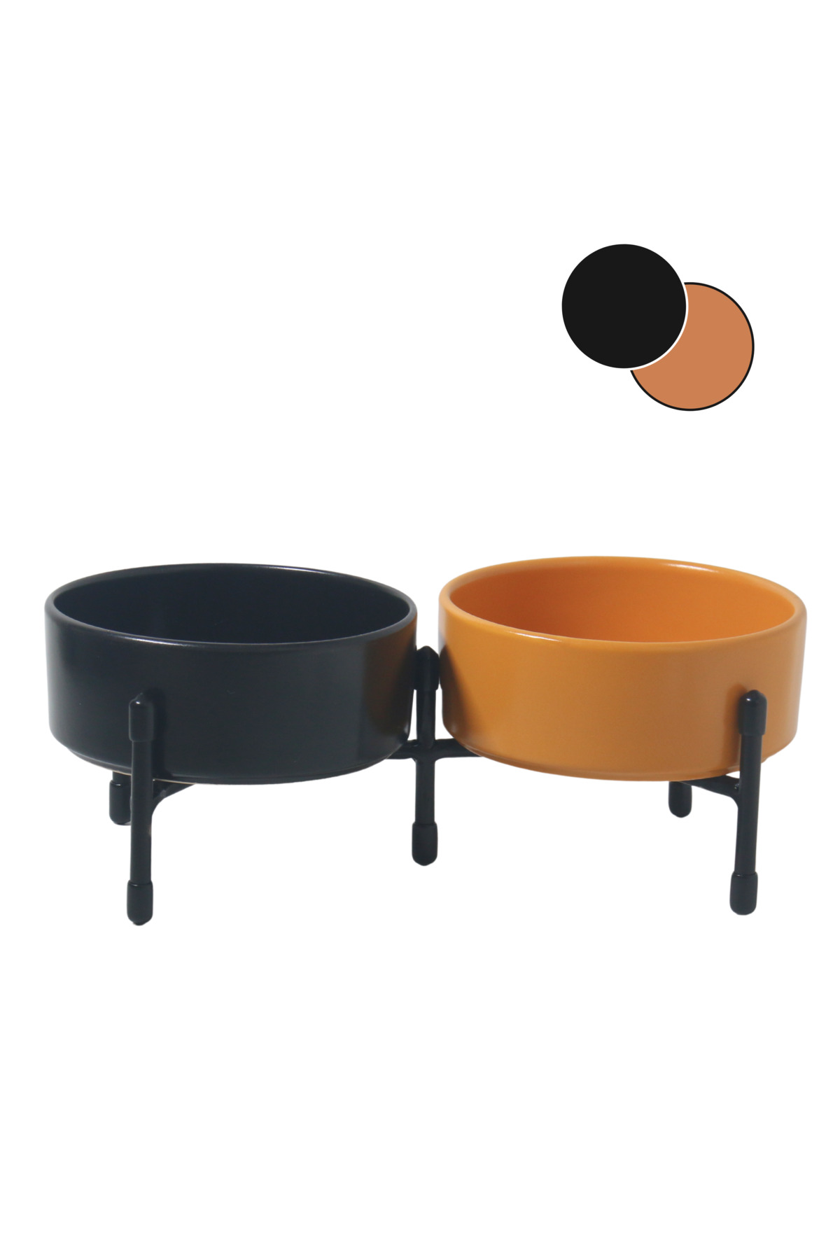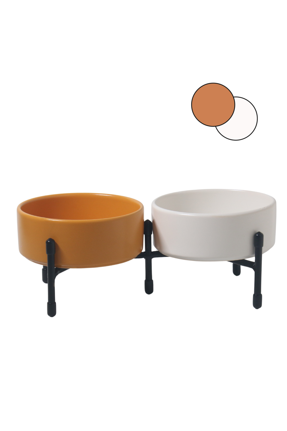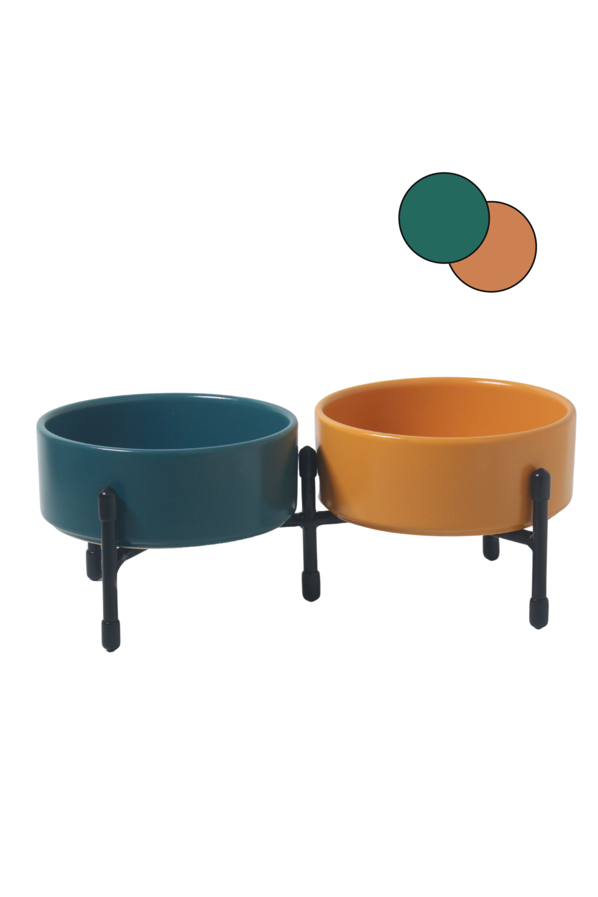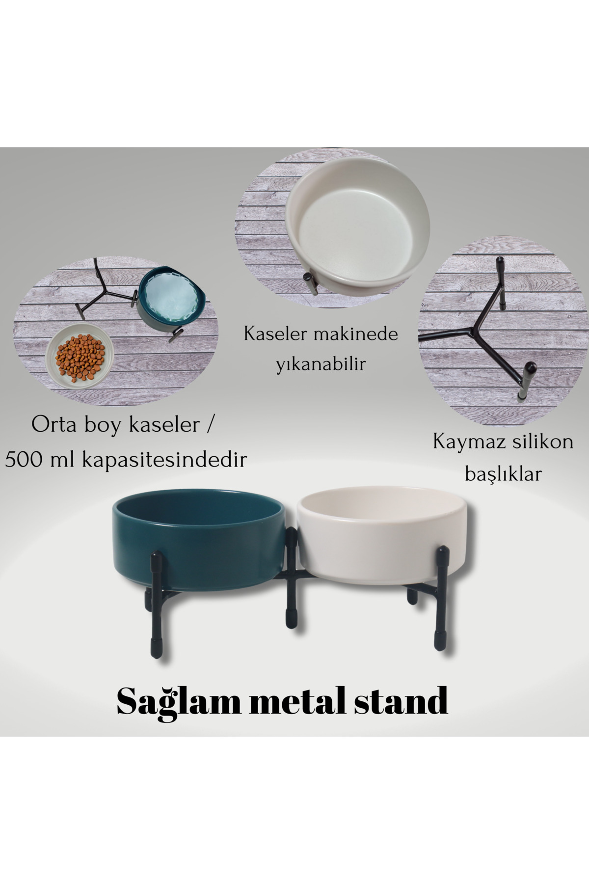 Metal ayaklar, standın dengeli bir şekilde durmasını sağlarken, çift taraflı kullanılabilme özelliği evinizin her köşesine pratik bir şekilde yerleştirilmesini sağlar. Bu sayede hem mama hem de su kaplarını aynı anda düzenli bir şekilde kullanabilirsiniz.