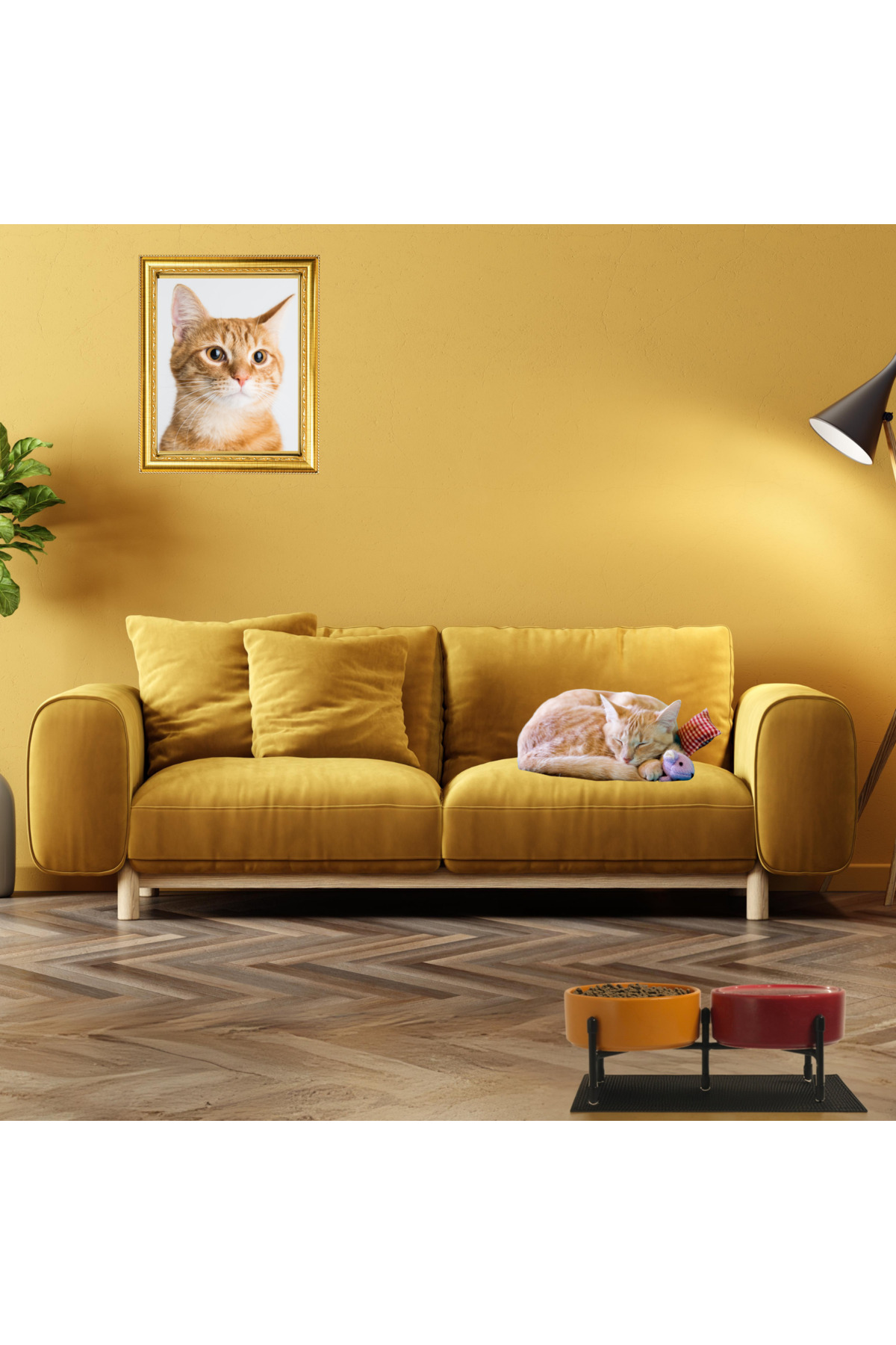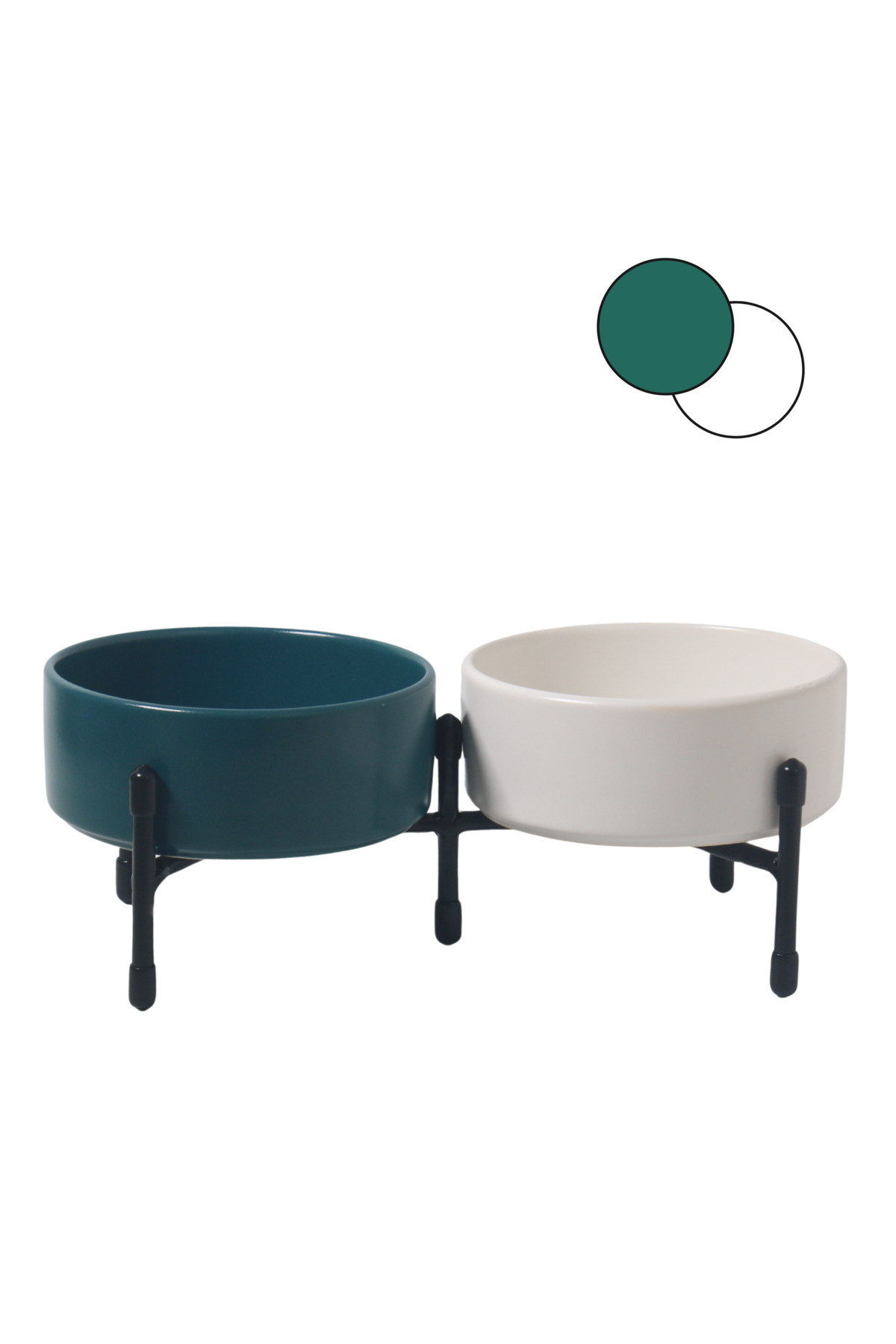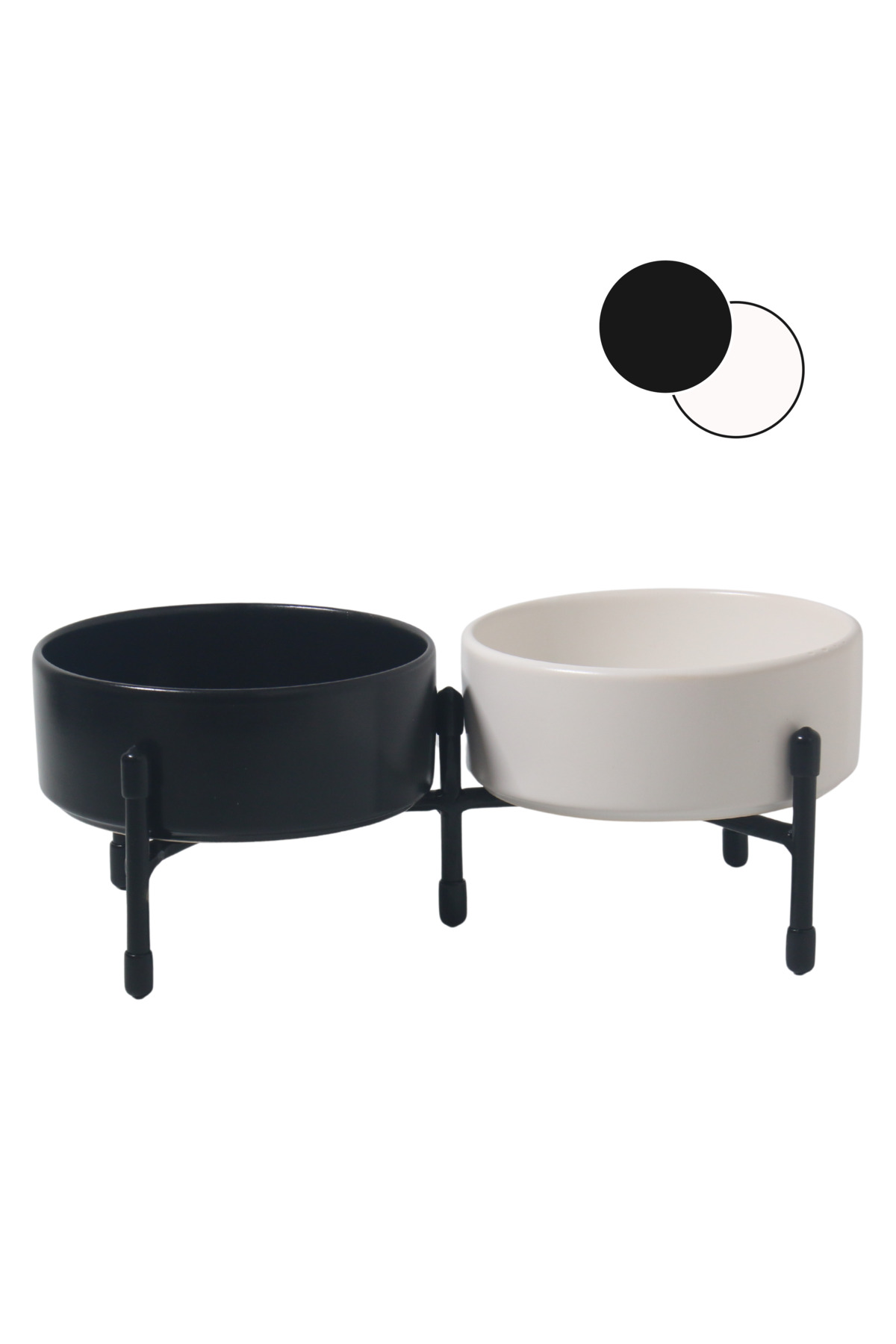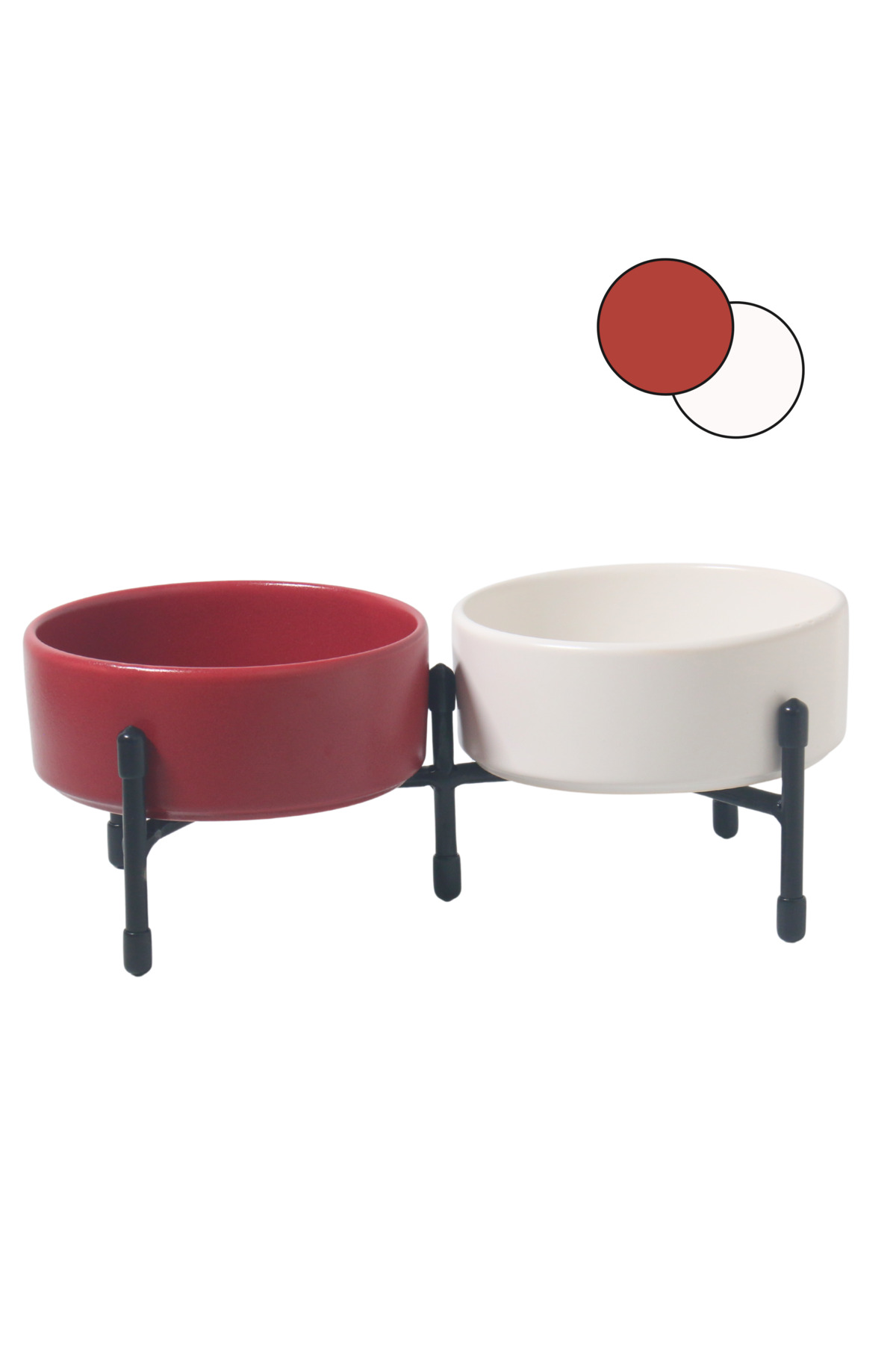 Metal ayaklar, standın dengeli bir şekilde durmasını sağlarken, çift taraflı kullanılabilme özelliği evinizin her köşesine pratik bir şekilde yerleştirilmesini sağlar. Bu sayede hem mama hem de su kaplarını aynı anda düzenli bir şekilde kullanabilirsiniz.