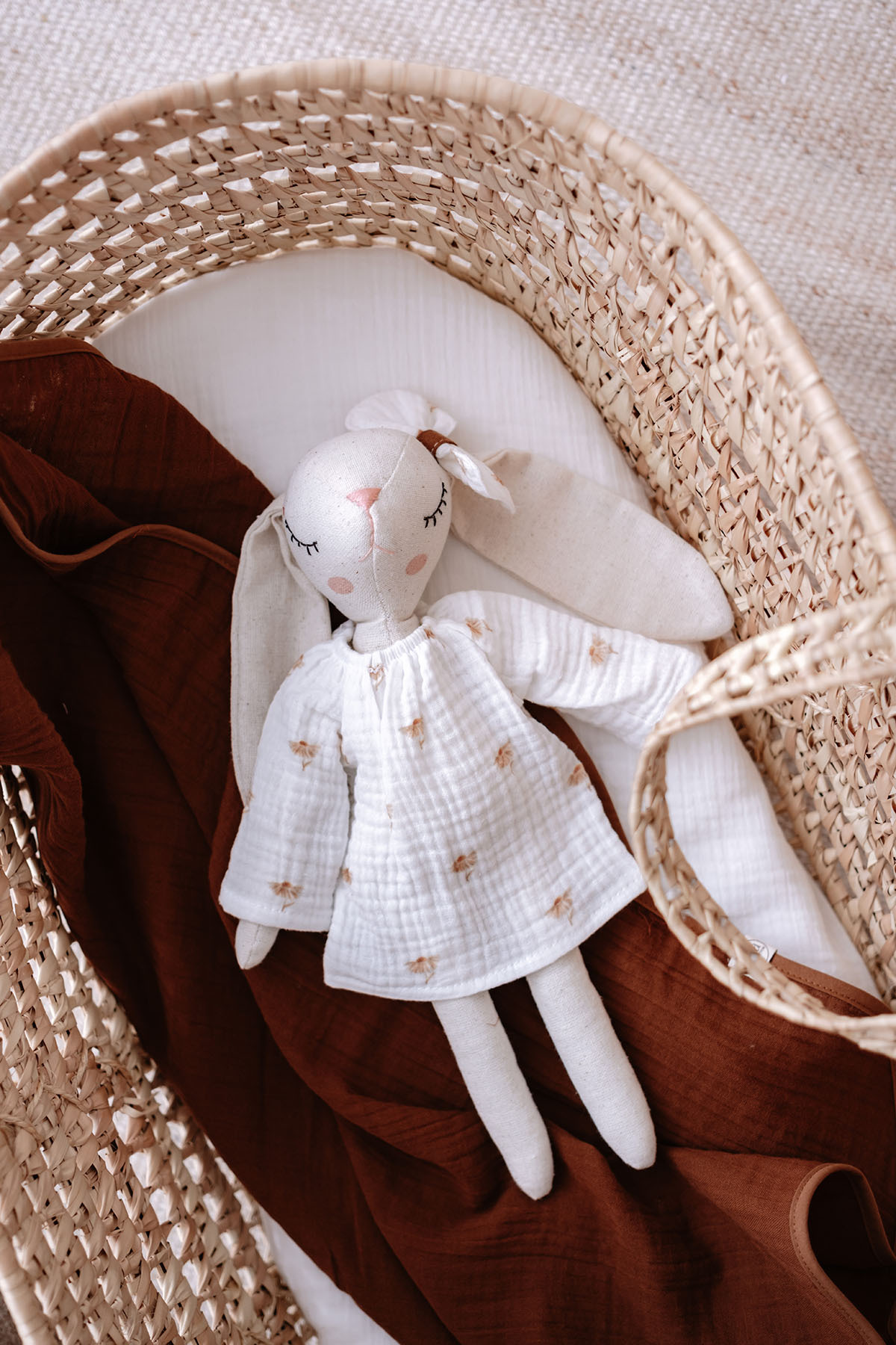 %100 Pamuklu Müslin kumaştan üretilmiş uyku arkadaşlarımız, bebeğinize anne kokusunu taşımak için üretildi.