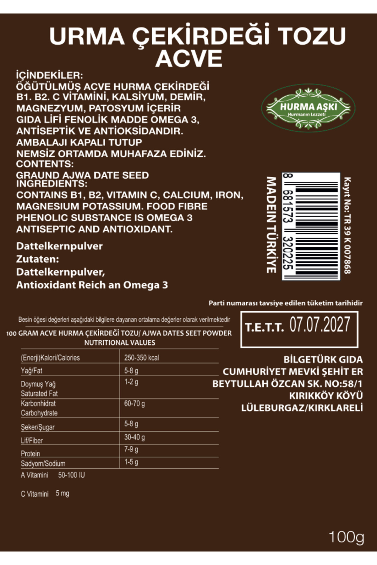 Acve hurma çekirdeği tozunu sıcak soğuk süt ile yoğurt ile dilerseniz kaynatıp suyunu içerek yada acve hurma tozu ile karıştırıp üzerine halis zeytin yağı ve süt ile karıştırıp tükete bilirsiniz.