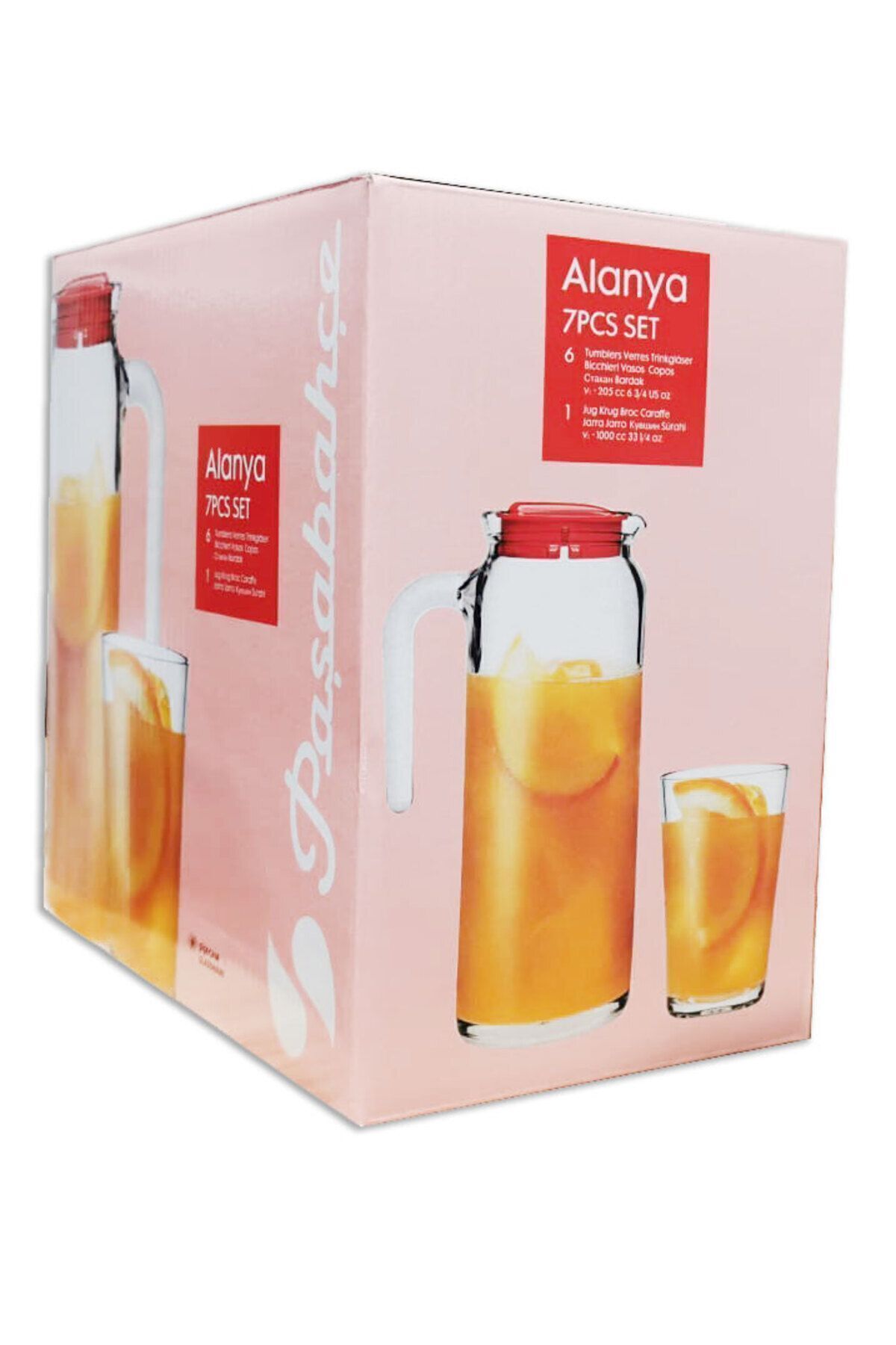 Alanya Paşabahçe 96396, şık tasarımı ve kaliteli cam malzemesiyle dikkat çeken 7 parçalık bir settir