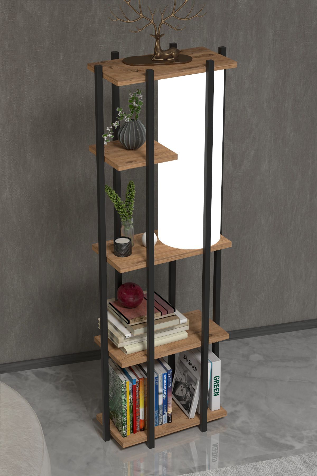 ,KİTAPLIKLI LAMBADER ATLANTİK ÇAM 5 Raflı bir bölmesinde lambader bulunan evinizin modern ortamına uygun olacak şık tasarıma sahip çok amaca hizmet eden hem kitaplık hem lambader olarak kullana bileceğiniz metal ayaklı suntalam raflı 2 mt açma kapama düğmeli kablosu olan led ampul veya 20 watt tasarruf ampulü ile kullanımı uygun olan ürünümüz demonte olarak gelecektir kurulum şeması paket içerisinde mevcuttur Kurulum için tornavida yeterli olur