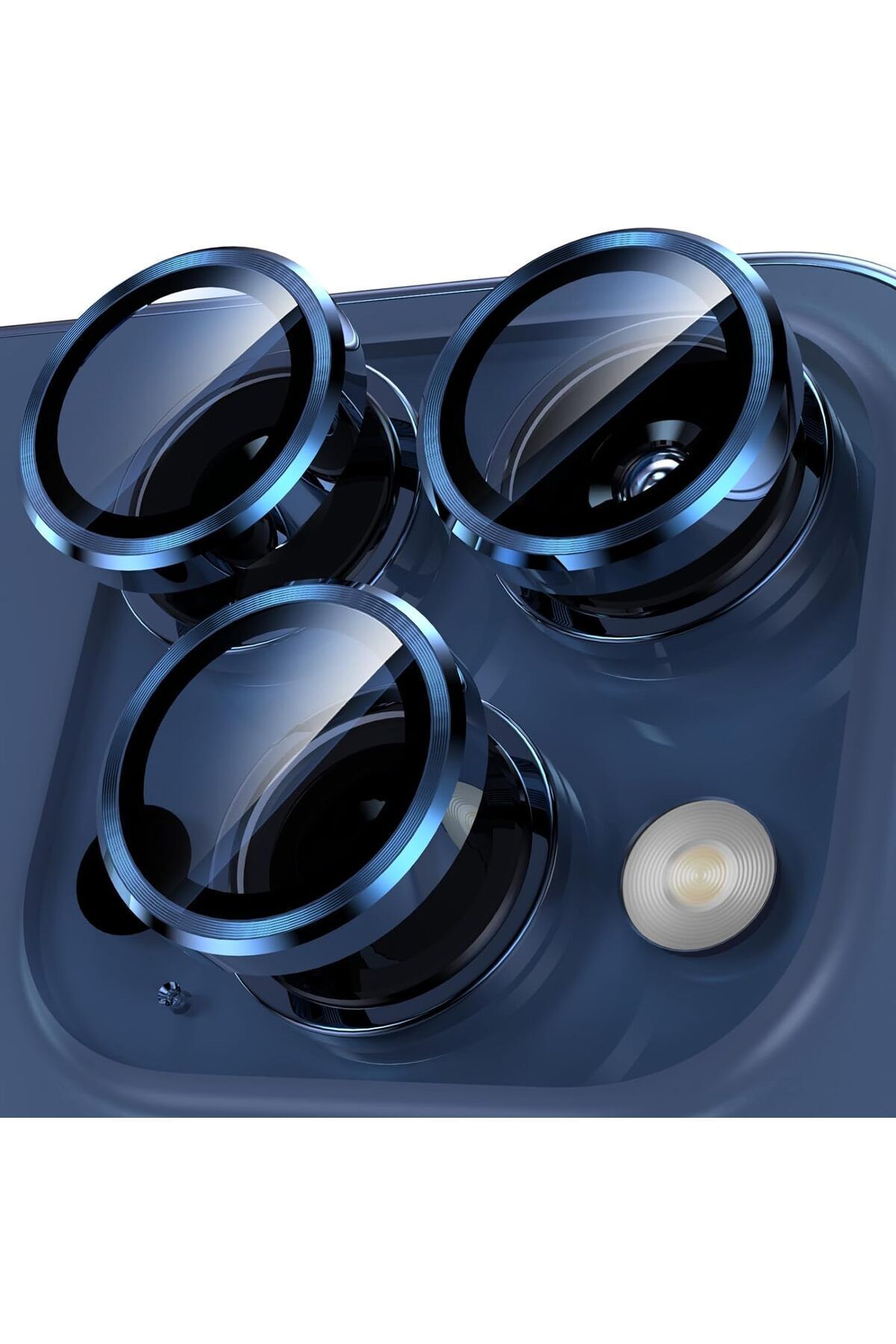 Apple iPhone 15 Pro Max ve iPhone 15 Pro modelleriyle tam uyumlu, kamera lenslerini çizilmelere ve darbelere karşı koruyan metal çerçeveli kamera koruyucu lens mercek seti