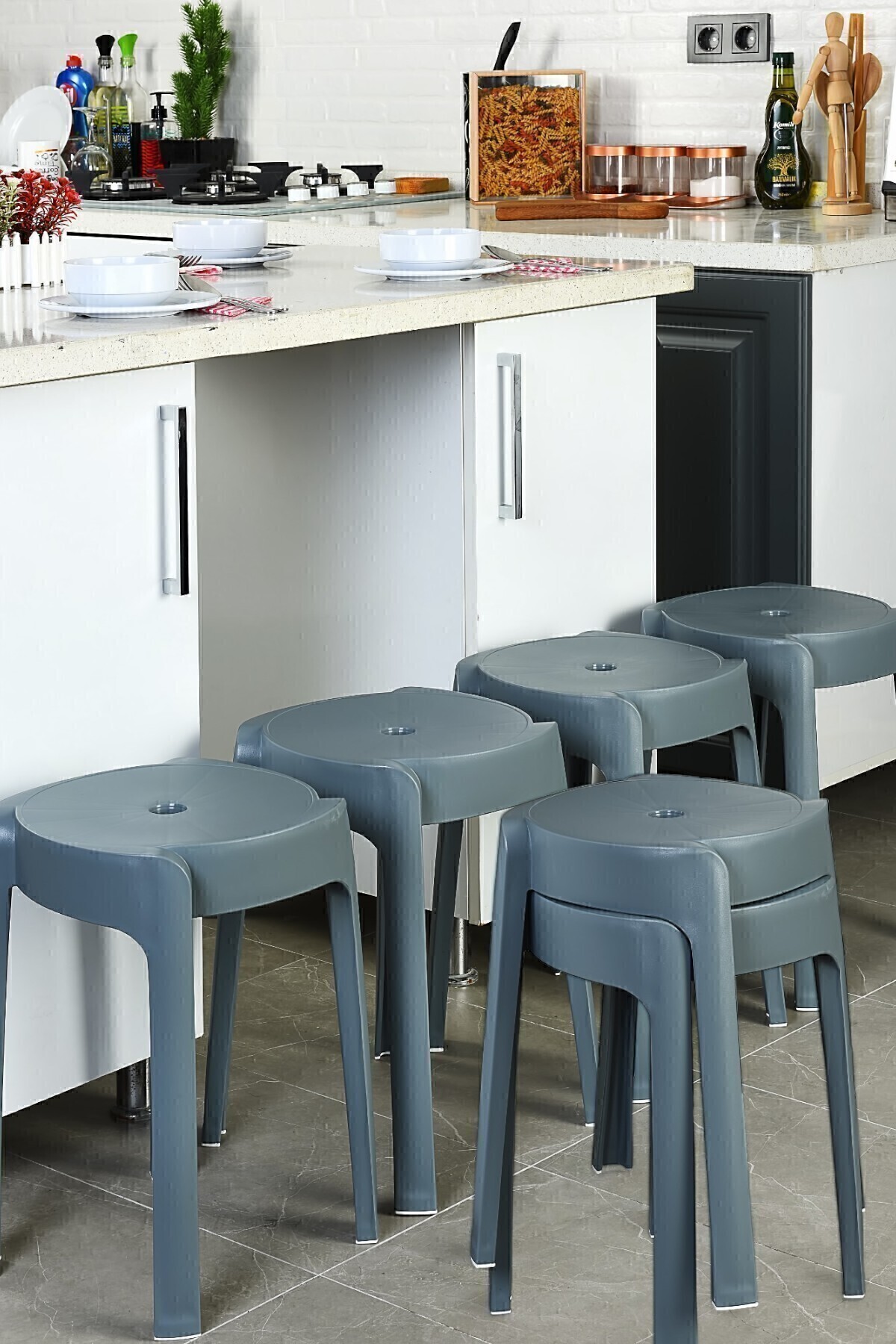 İronika Kaymaz Ayaklı Dekoratif İç İçe Geçebilen Plastik Tabure Mutfak Bahçe Taburesi 6 Adet Beyaz Pratik kullanımı ve sağlam yapısıyla her türlü ihtiyaca cevap veren, kaydırmaz ayaklı ve iç içe geçebilen tasarımıyla dikkat çeken tabure, ev ve işyerlerinizdeki her alan için ideal bir çözüm sunar.