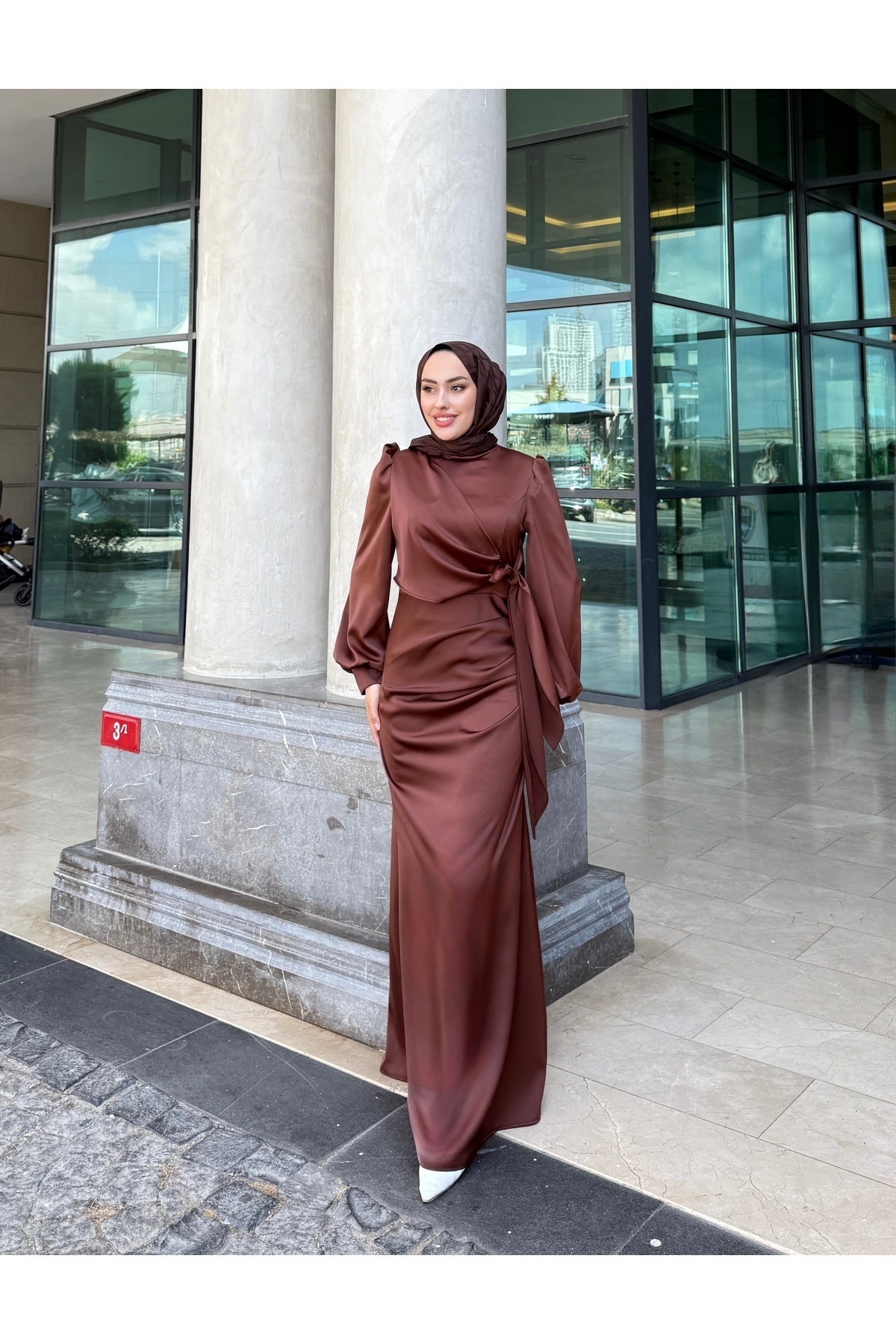 Maxi boyu ile hem rahat hareket etme imkanı sağlar hem de zarafetinizi korurken balık kesimi vücut hatlarınıza mükemmel uyum sağlar.