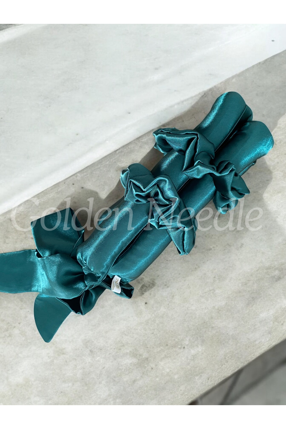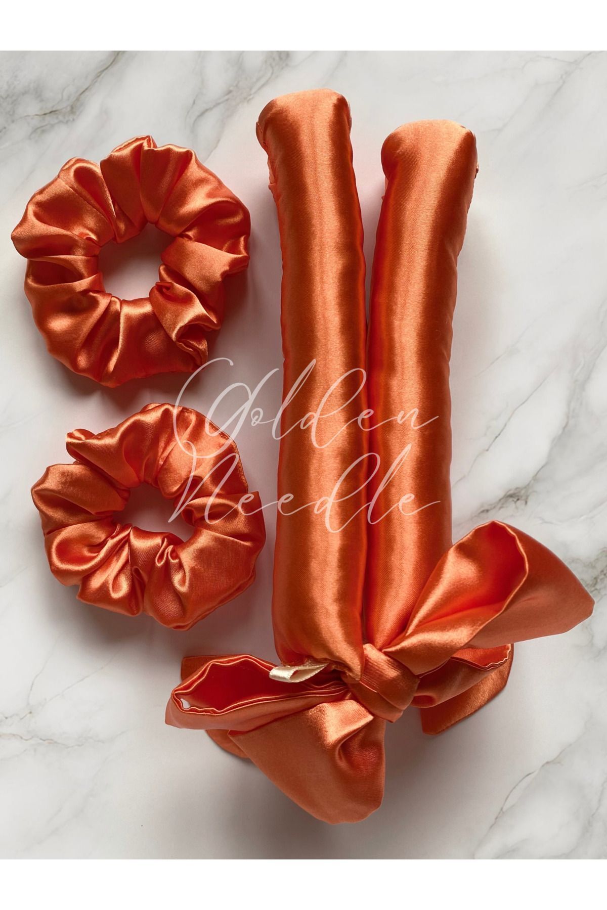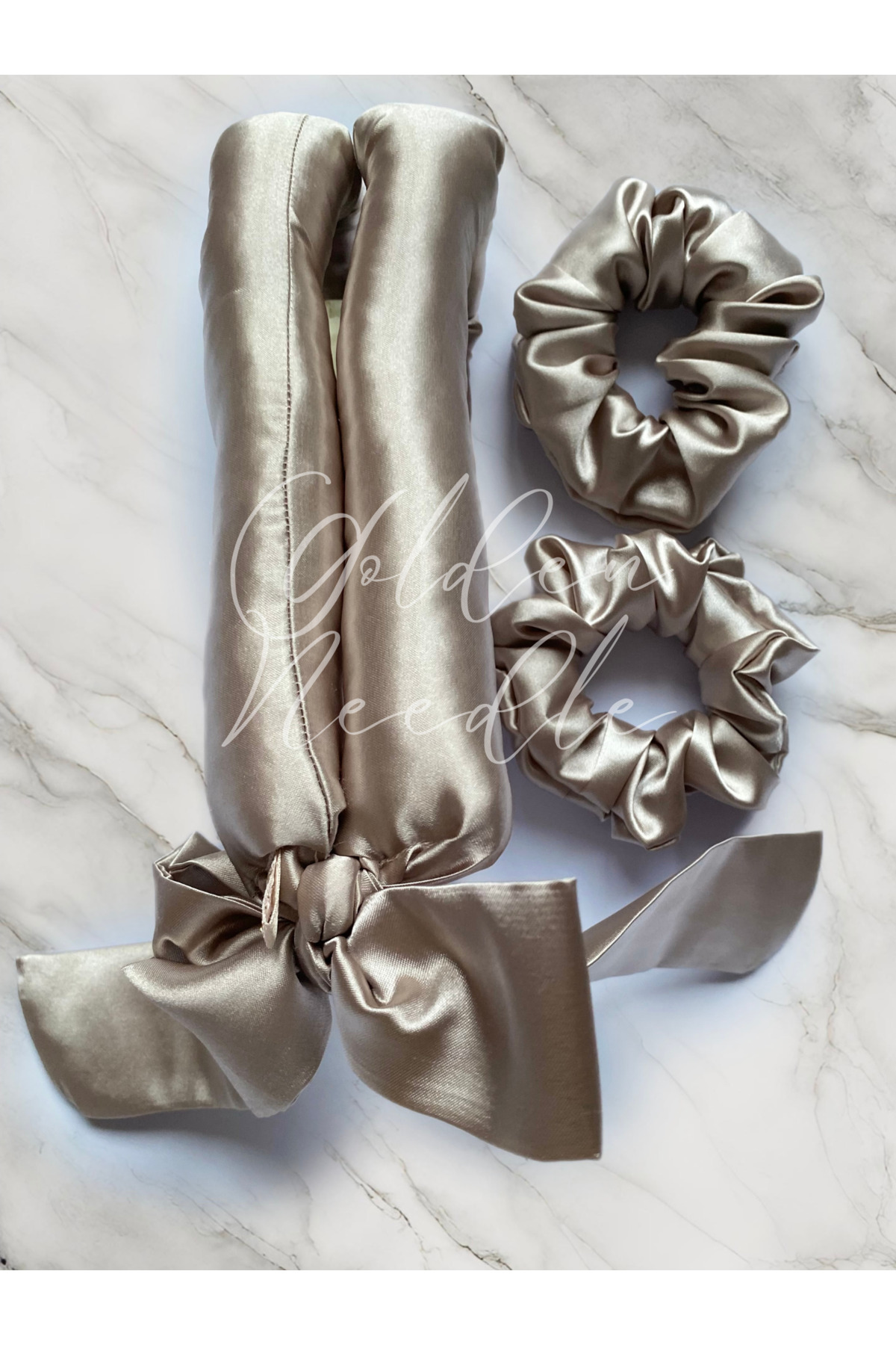 Altın Paket: 2 adet büyük saten toka, 2 adet küçük saten toka, fiyonklu ısısız saç şekillendirici, 1 adet lotus toka, saklama çantası