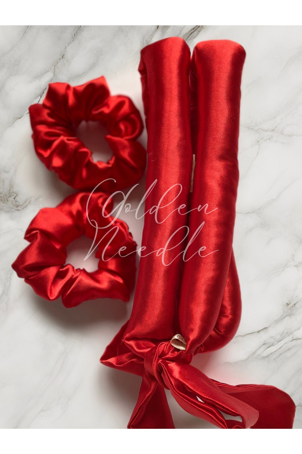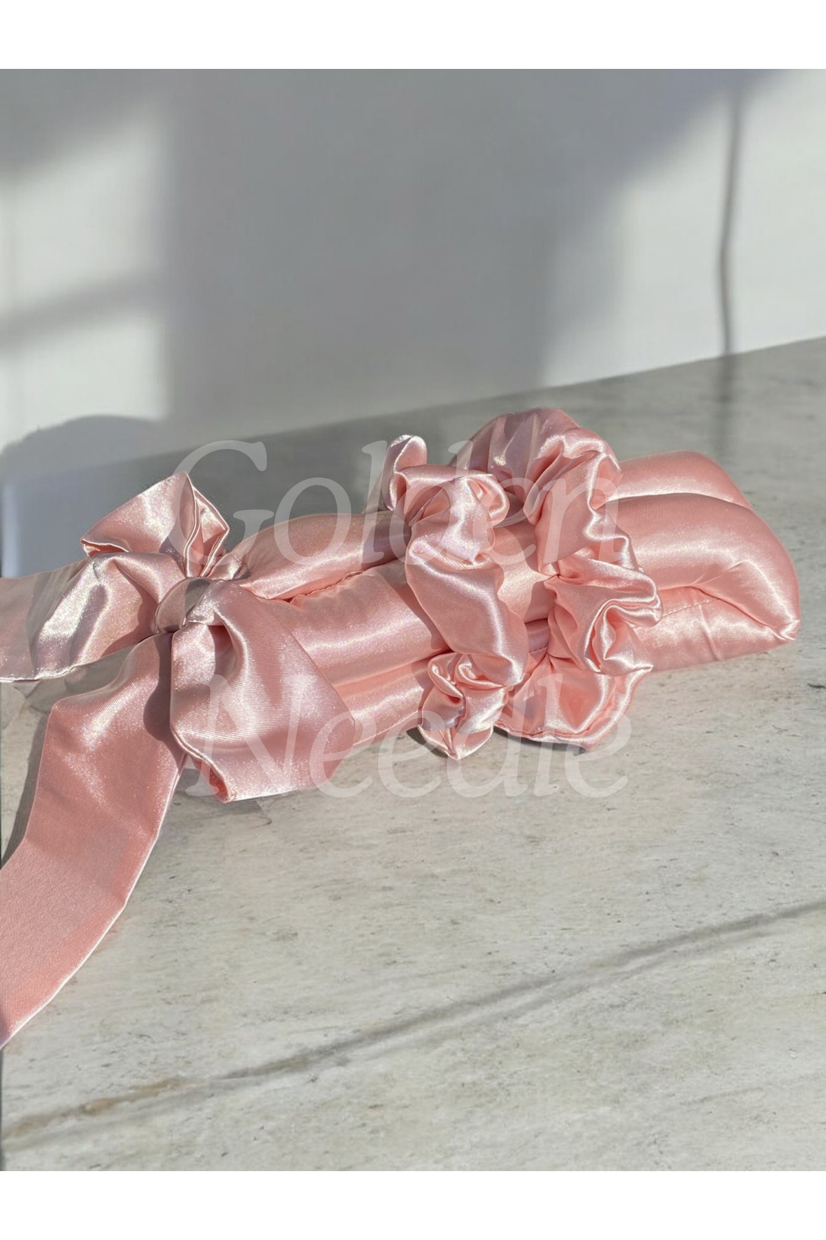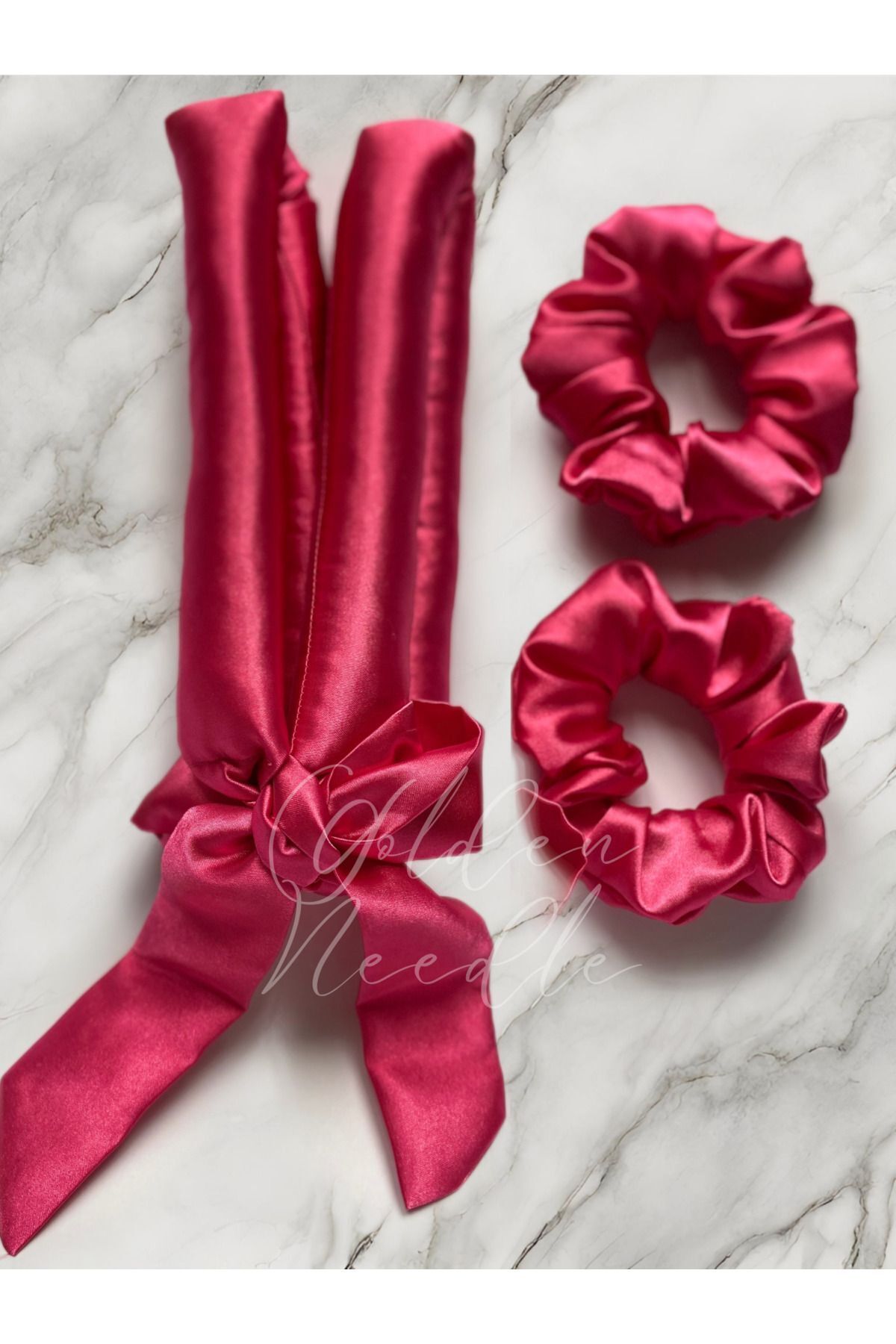 Temel Paket: 2 adet büyük saten toka, fiyonklu ısısız saç şekillendirici