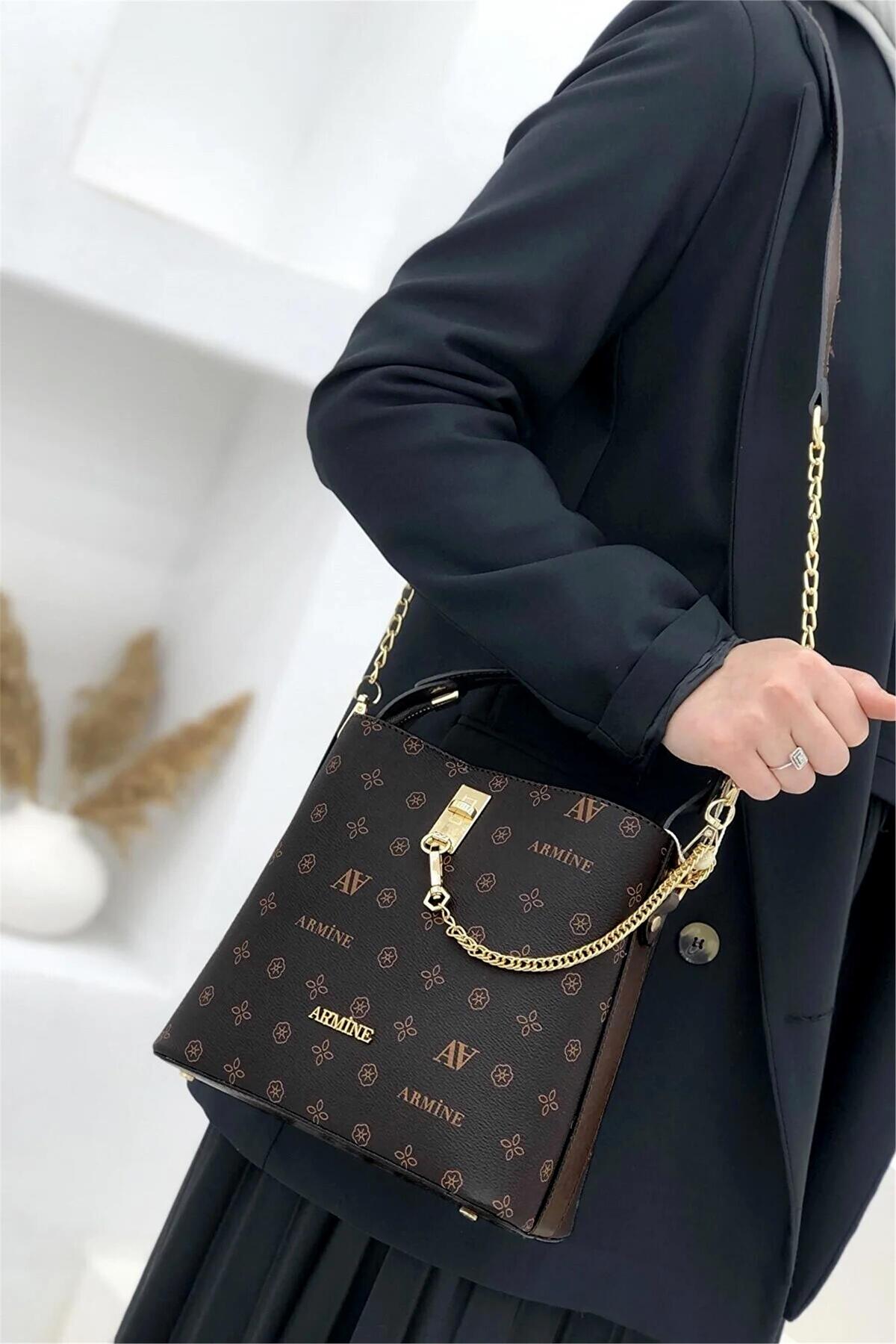 Klasik ve zamansız tasarımıyla her kıyafetle uyum sağlayan düz desenli siyah baskılı el çantası