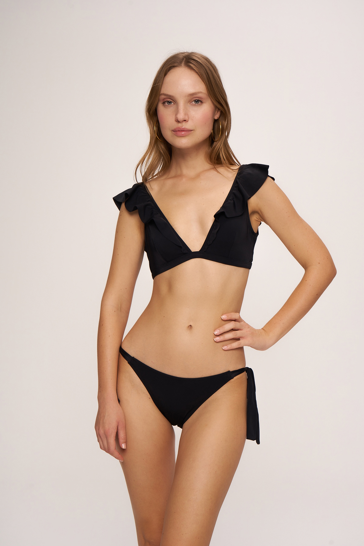 Üçgen üst kesimi ile modern ve feminen bir siluet çizerken, tüm vücut tiplerine uyum sağlar
