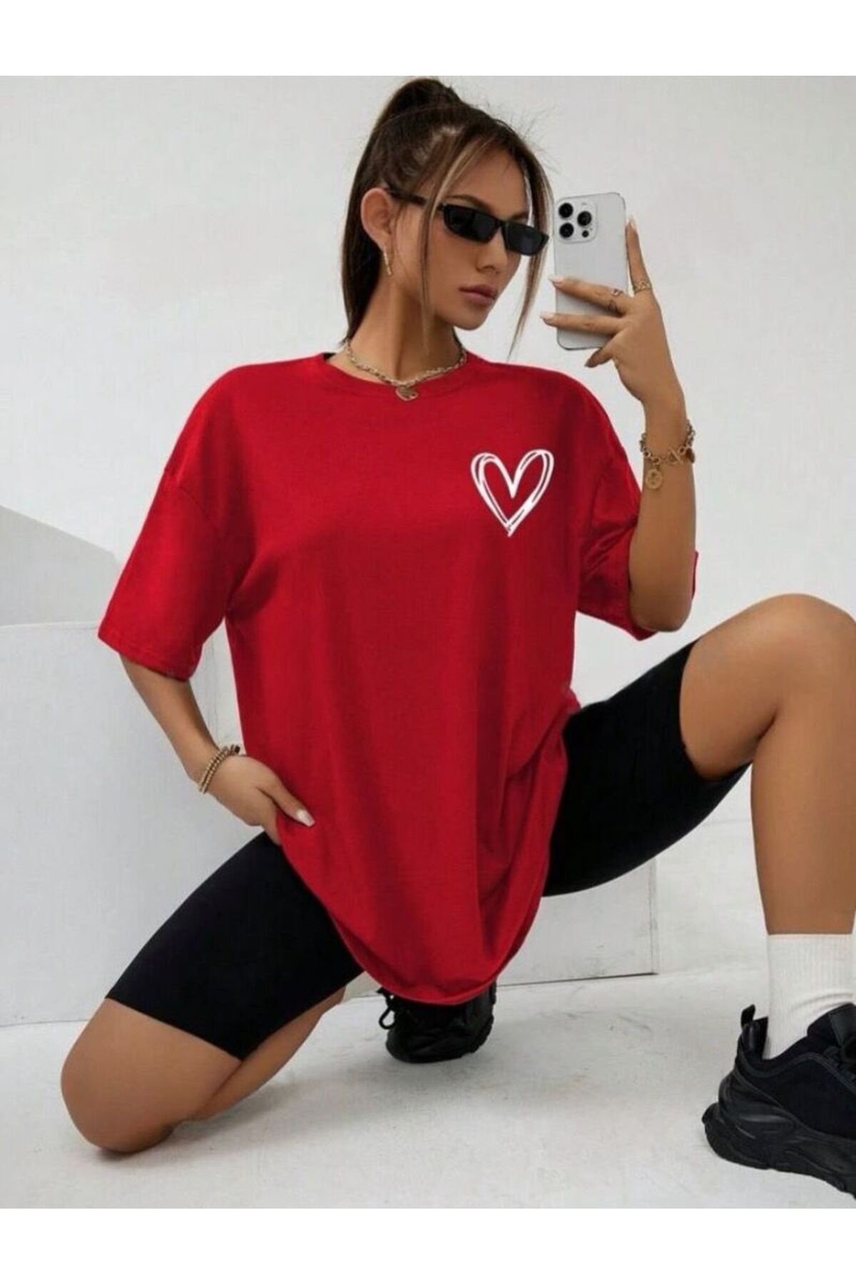 Kırmızı kalp baskısı, sokak stiliyle uyumlu ve canlı bir görünüm kazandırır.