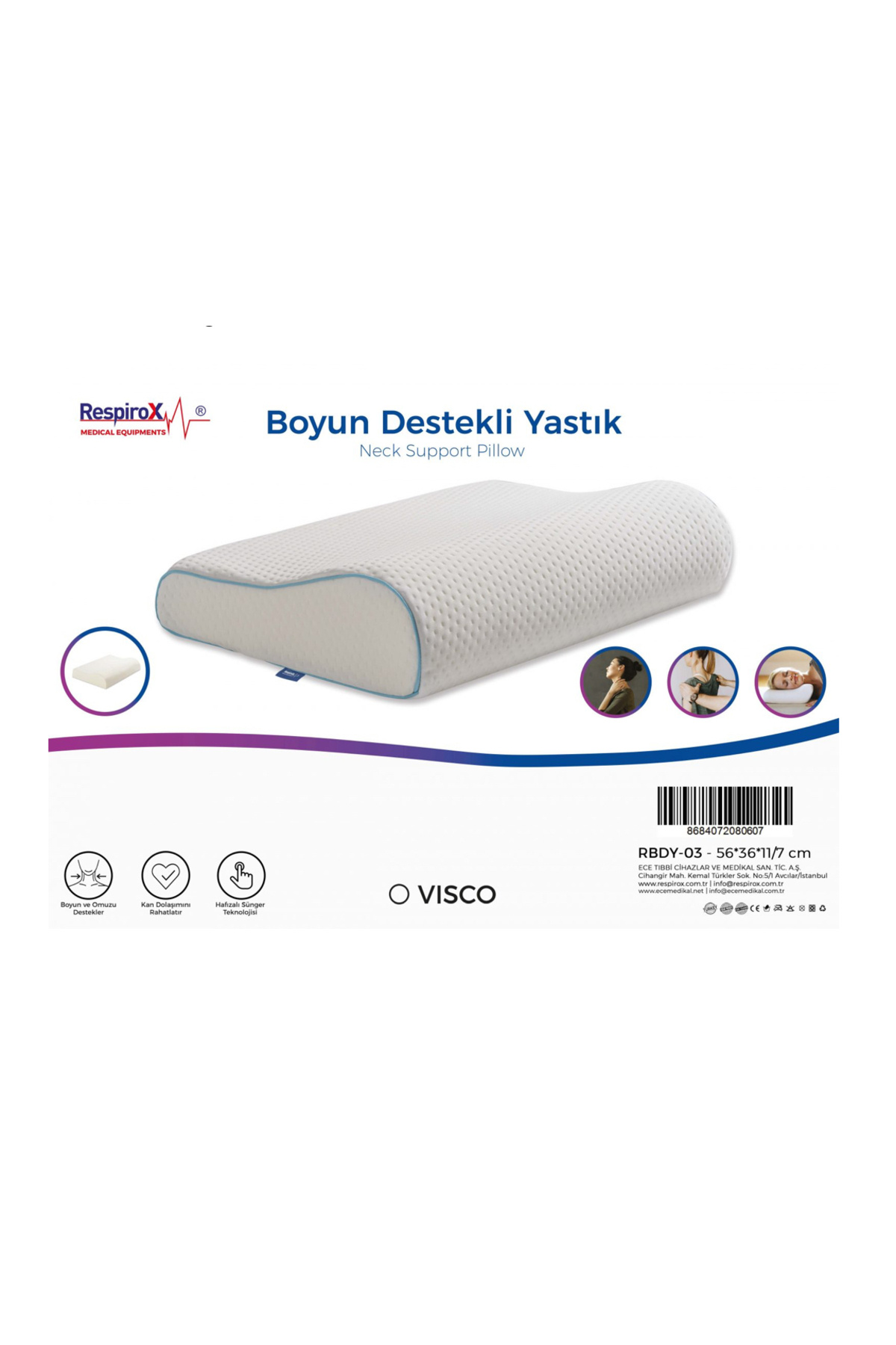 RBDY-03 BOYUN DESTEKLİ YASTIK BOYUN VE OMUZU DESTEKLER HAFIZALI SÜNGER TEKNOLOJİSİ