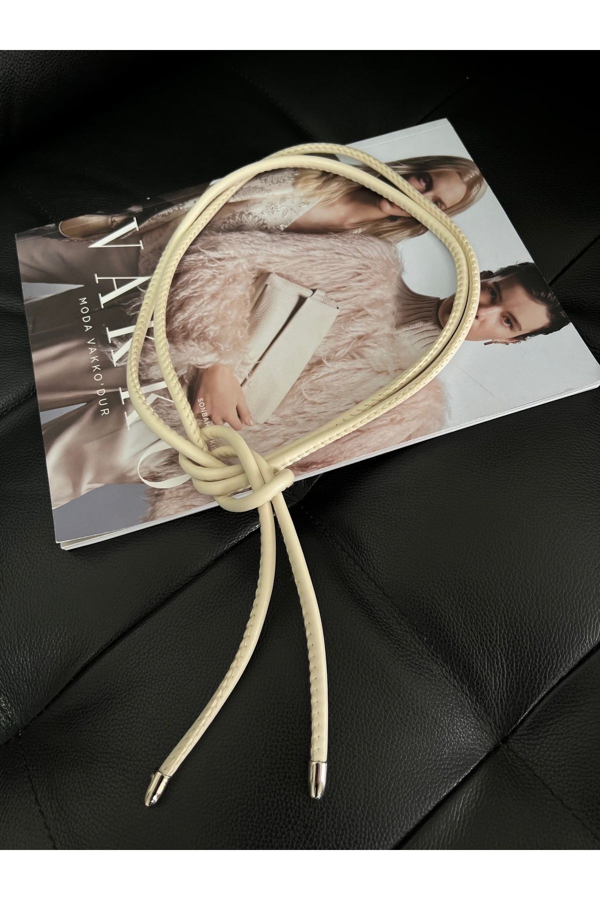 Düğüm detayıyla dikkat çeken bu kemer, tarzınıza modern ve şık bir dokunuş katacak.