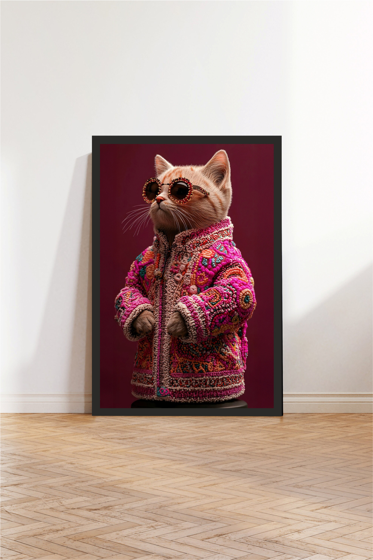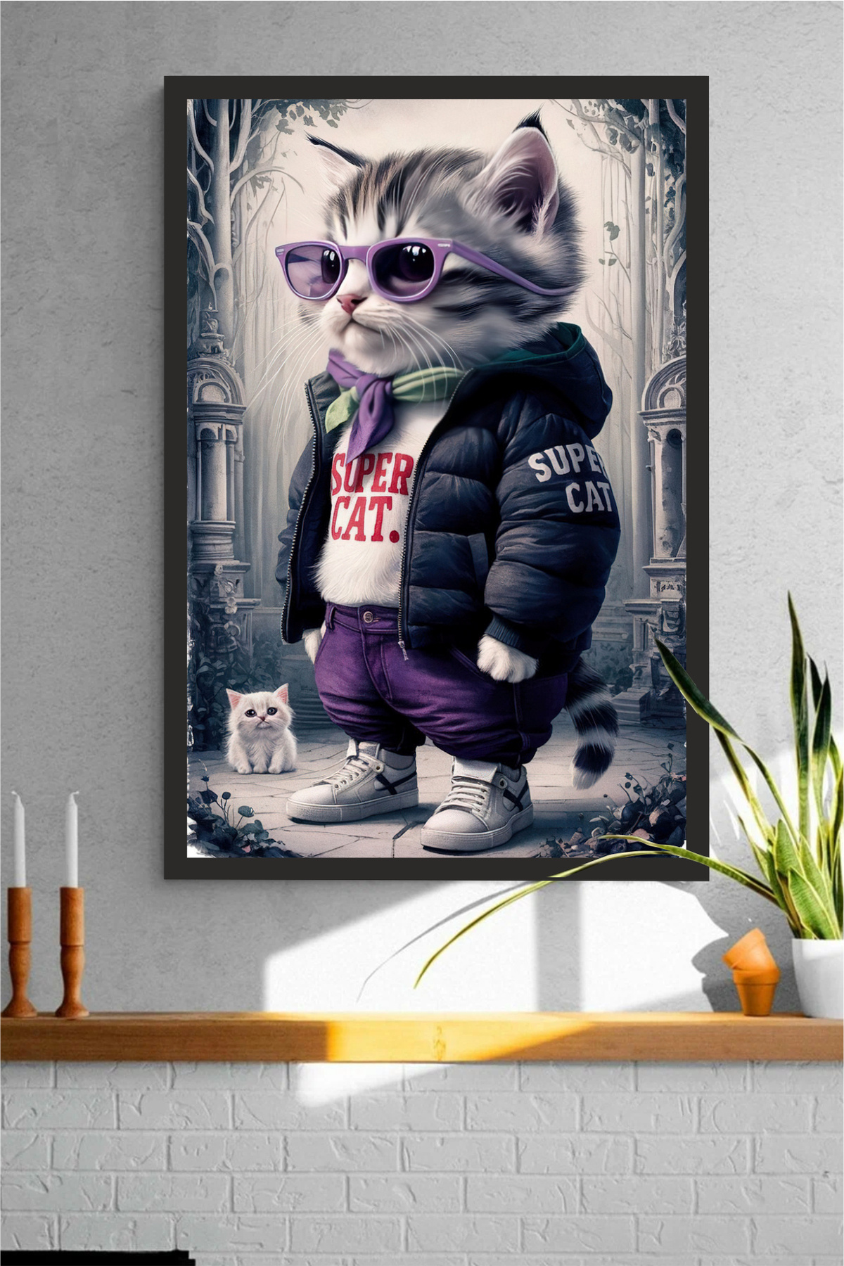 Modern dekorasyon anlayışınıza uyum sağlayacak kedi tasarımlı çerçeve görünümlü mdf tablo, mekanınıza şıklık katar