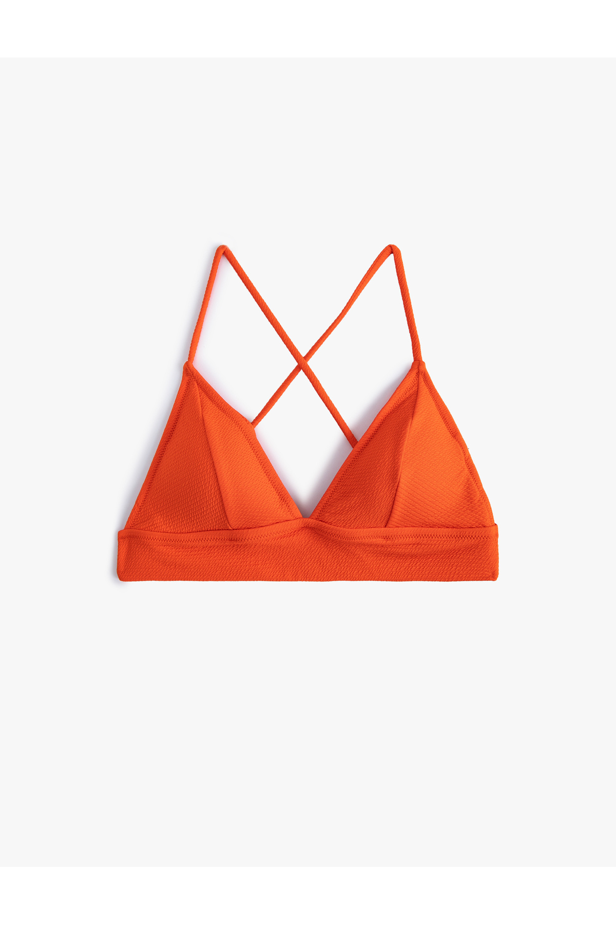 Çapraz askılı, kaplı, dokulu, üçgen bikini üstü ile plaj kombininizi tamamlayın!