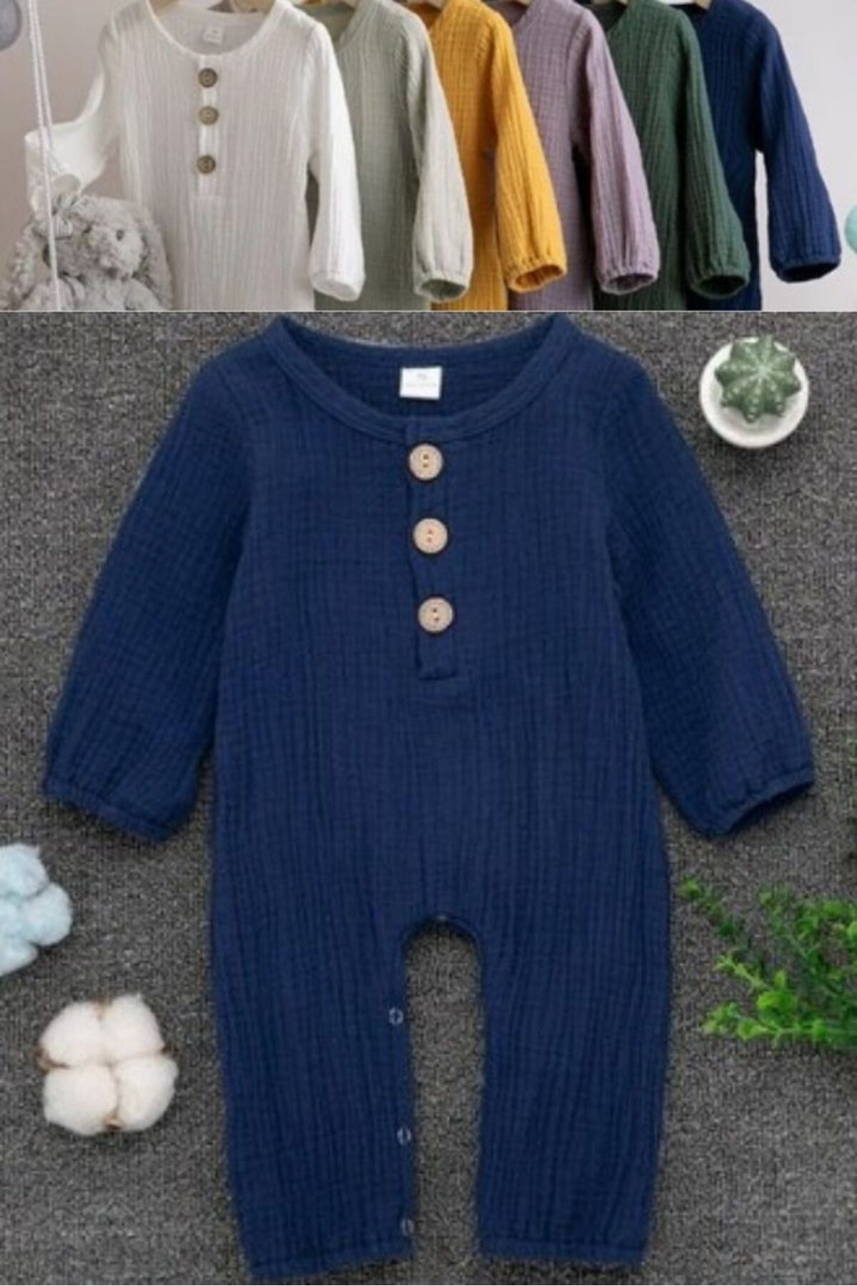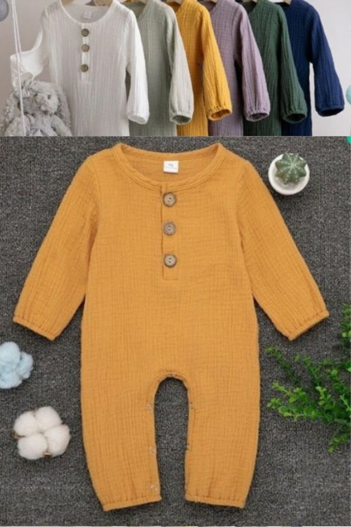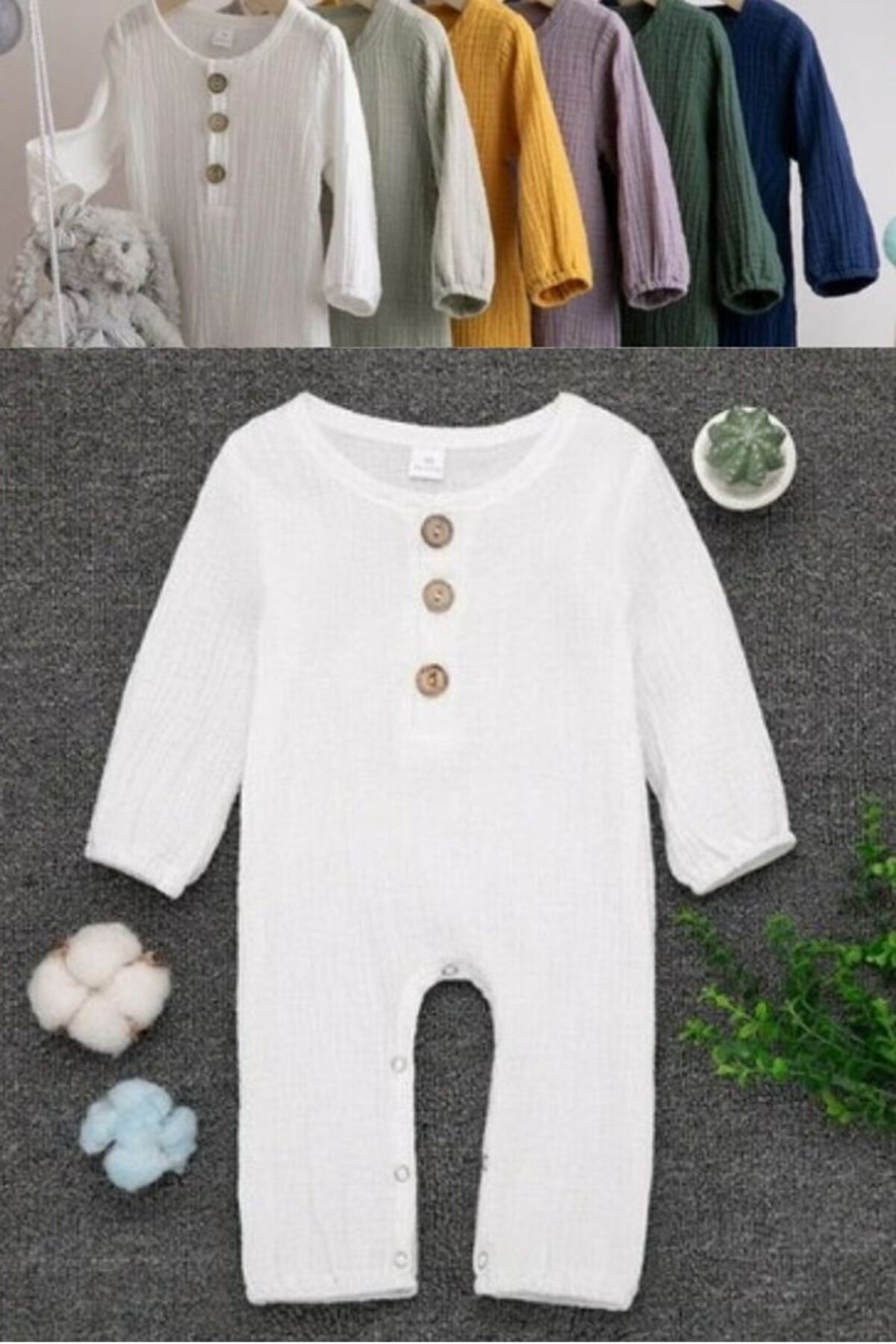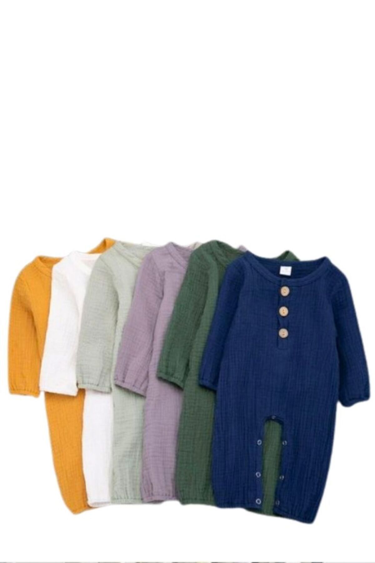 Unısex Yenidoğan Bebek Organik Pamuk Uzun Kollu Düğmeli Müslin Tulum farklı renk seçenekleri ile yazın güzel bir konbin sağlar, Müslin Bebek Tulumlarımızla konforun ve şıklığın zirvesini yaşayın