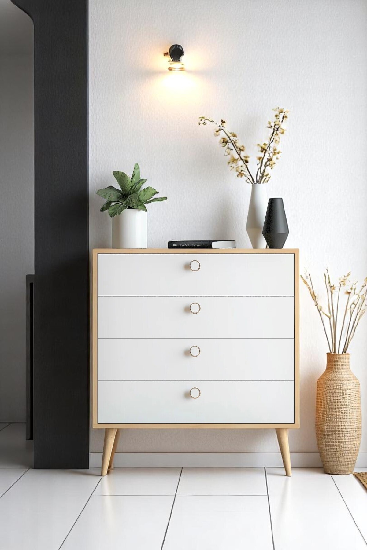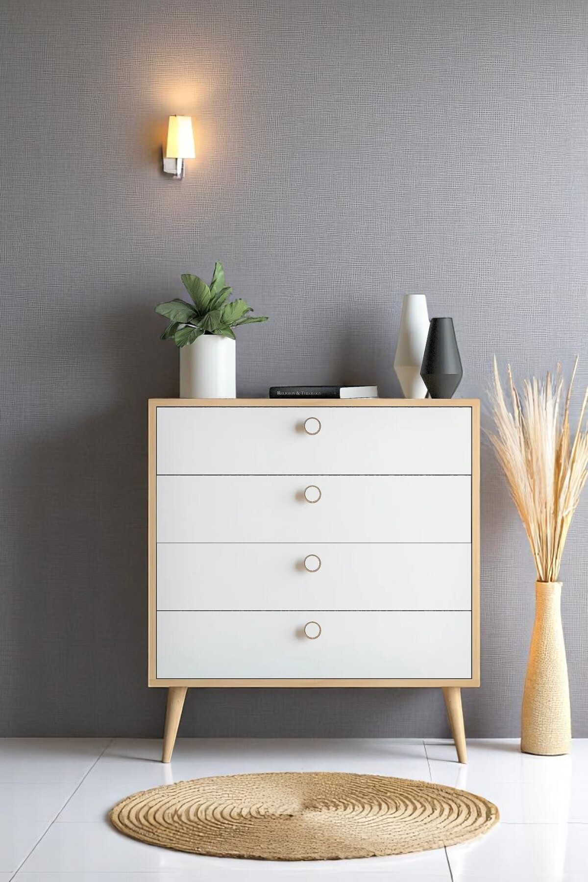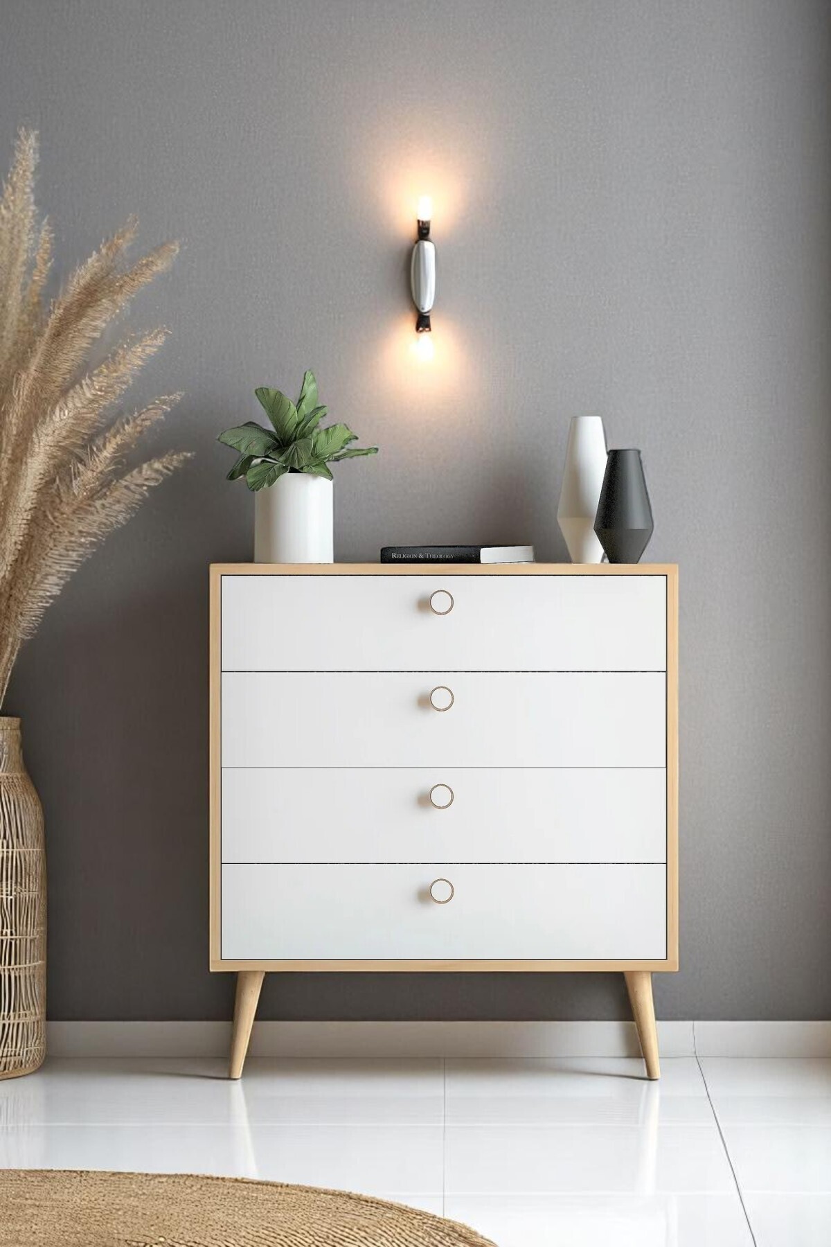 Zen Şifonyer / Çok Amaçlı Dolap/ Çekmeceli Şifonyer / Kapaklı Şifonyer / 4 Çekmeceli Şifonyer ***** 1. sınıf E1 ENV- TSE standartlarına uygun melamin kaplı yonga levha kullanılmıştır.