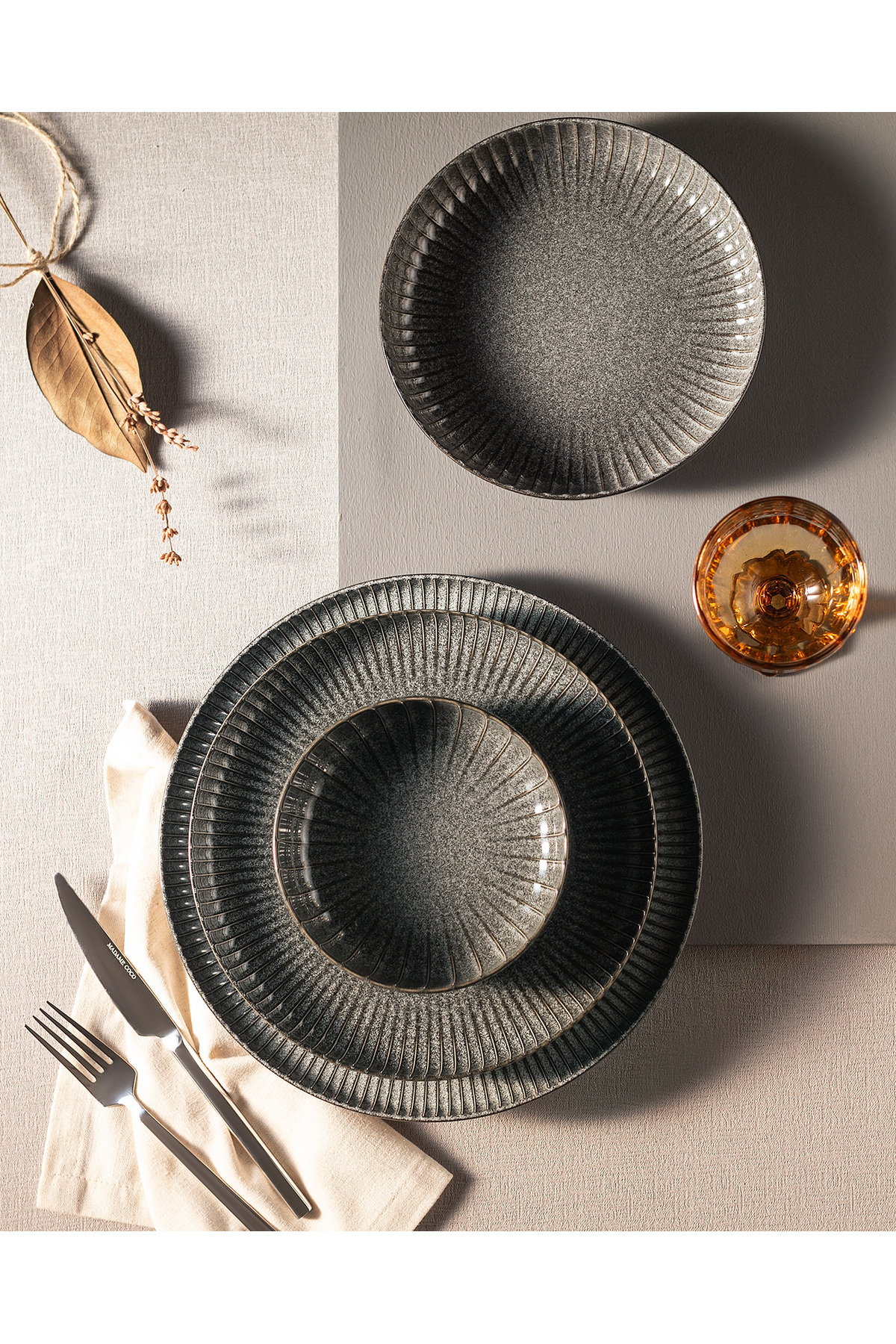 Koyu Gri Prendre 24 Parça Yemek Takımı ile sofralarınıza şıklık katmak için bu eşsiz tasarımın sahibi olun ve sofralarınıza ayrıcalık katın! Teknik Özellikler: Ürün Tipi: Porselen Renk: Koyu Gri Ürün Barkodu : 8684427026212 Üretim Yeri: Türkiye Ölçü: 6 Adet Kase : 15 cm 6 Adet Yemek Tabağı : 22 cm 6 Adet Pasta Tabağı : 20 cm 6 Adet Servis Tabağı: 26 cm Paket İçeriği : 6 Adet Kase 6 Adet Yemek Tabağı 6 Adet Pasta Tabağı 6 Adet Servis Tabağı