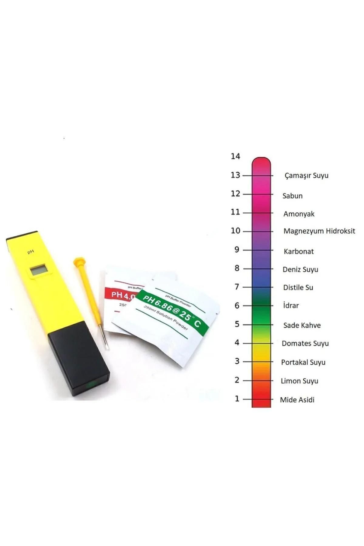 Termometreli Dijital Ph Metre Su Sıvı Akvaryum Ph Ölçer 2 Adet Pil Kap 2 Kalibrasyon Çözeltisi