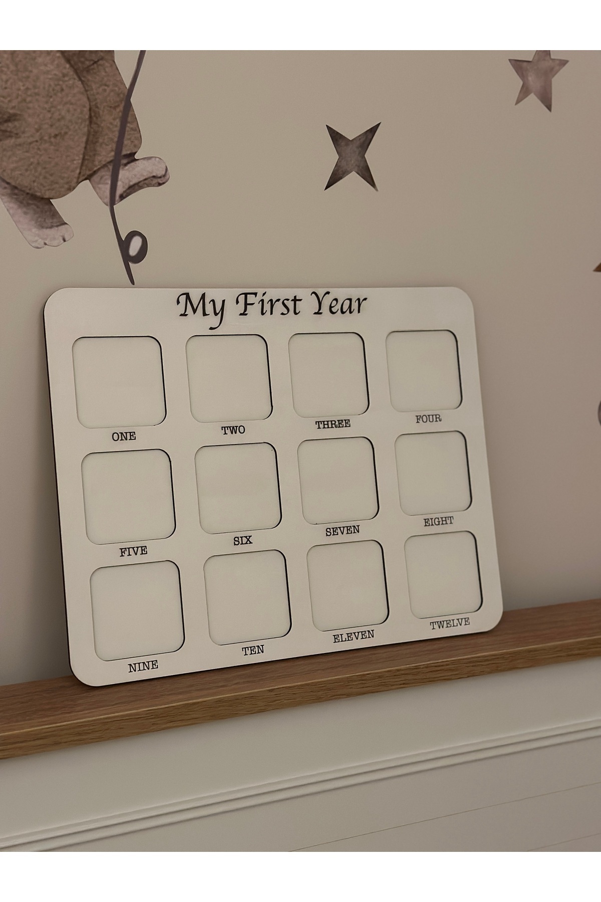 ✨ Ürün Özellikleri Ölçü: 28 x 35 cm – Kalınlık: 6 mm Malzeme: Yüksek kaliteli 2 parça MDF 12 ay için ayrı fotoğraf bölmeleri (6,5 x 6,5 cm) Duvara asılabilir veya masa üstünde kullanılabilir “My First Year” yazısı yerine bebeğinizin ismi yazdırılabilir (Sipariş notuna ekleyiniz, aksi halde standart gönderilir) 👶 Bebeğinizin gelişimini adım adım takip eder, aile ve sevdiklerinizle paylaşabileceğiniz unutulmaz bir hatıra sunar.