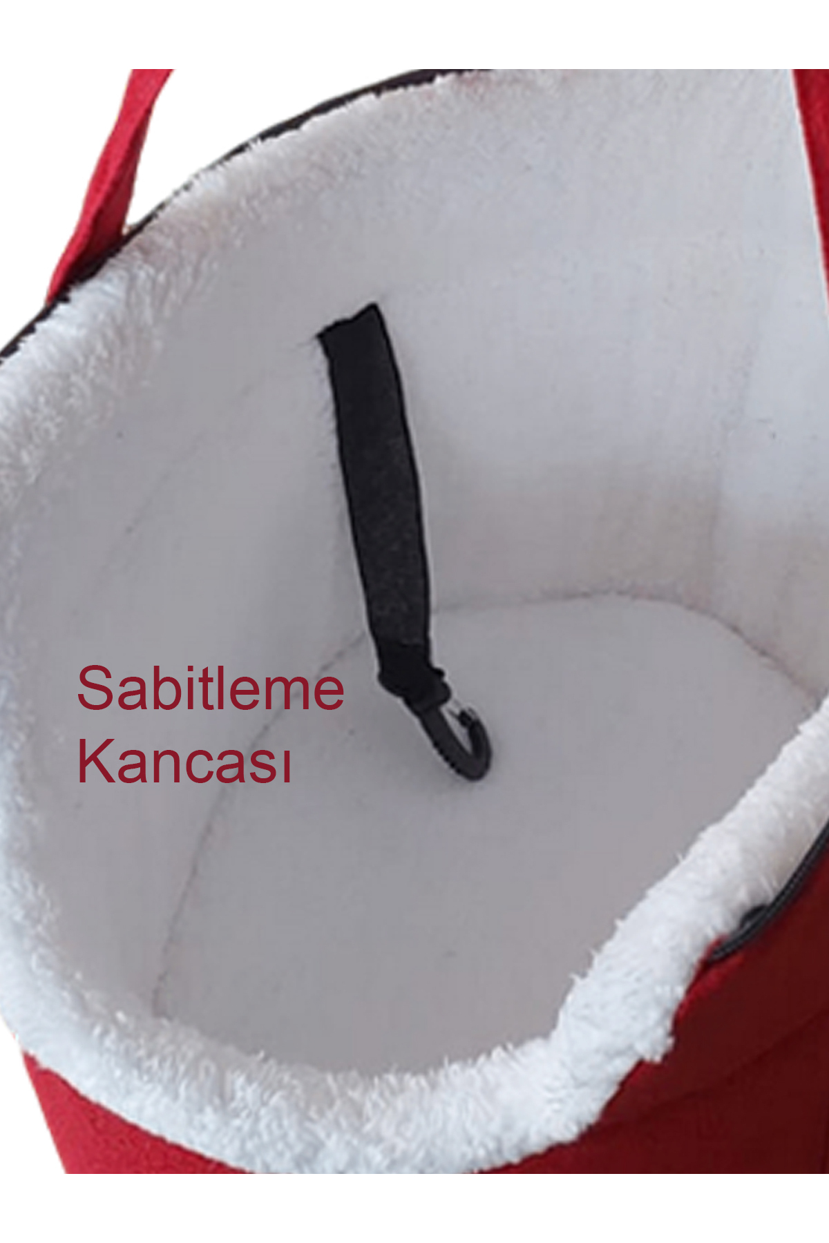 Çanta içerisinde evcil dostunuzun tasmasına takabileceğiniz kancalı sabitleme kemeri mevcuttur.