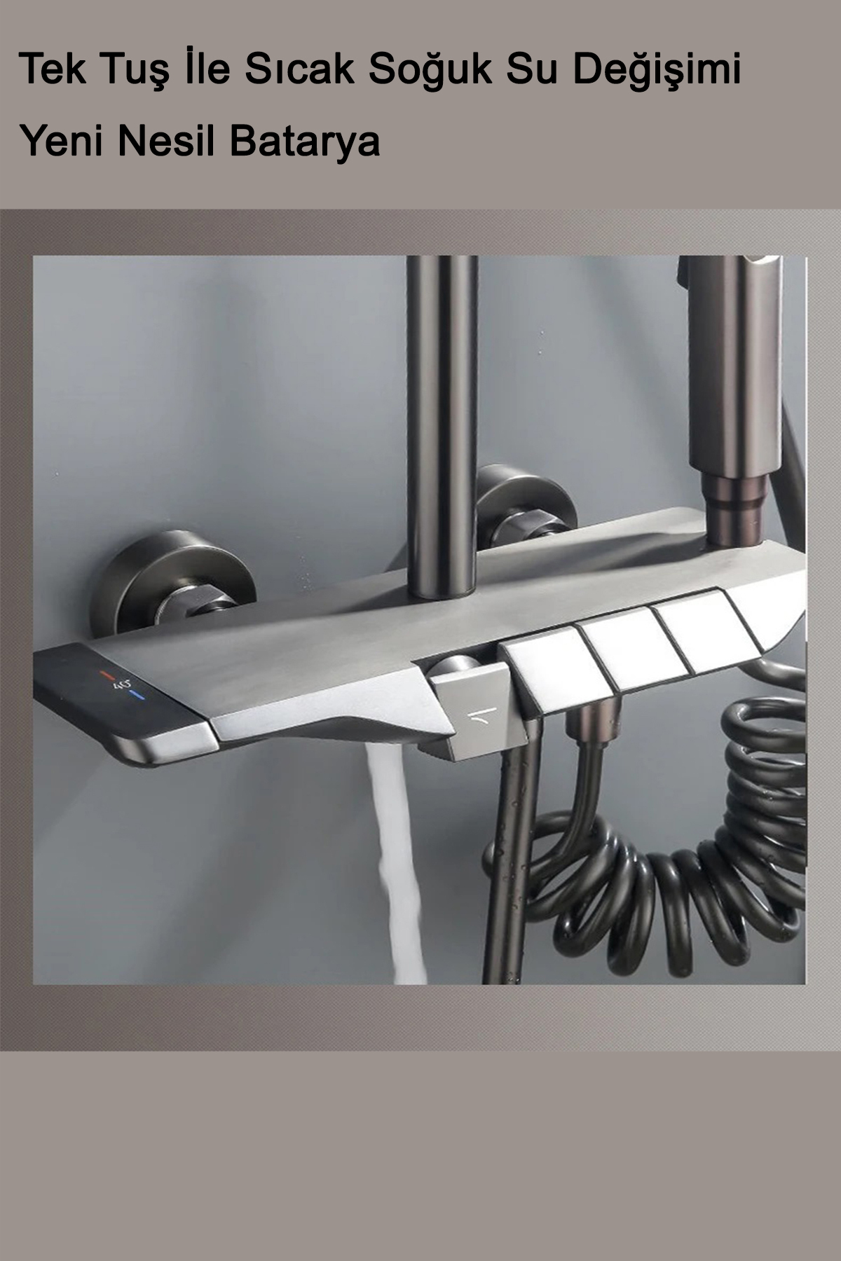 AquaShower Gri Piyano Banyo Batarya Robot Tepe Yağmurlama Duş Seti Yeni Nesil Duş Takımı Garantili