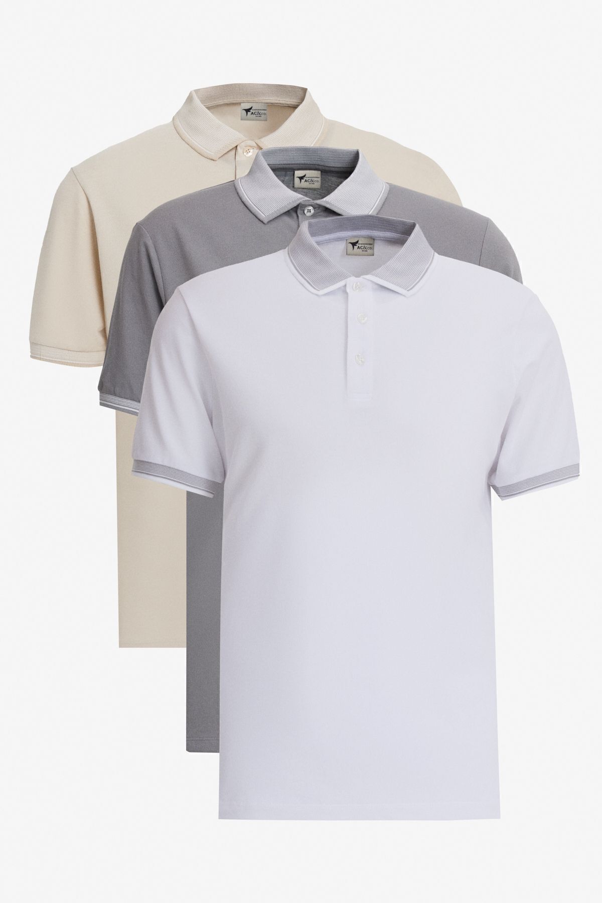 %55 Pamuk, %45 Polyester, Düz Bordo- Açık Siyah-Açık Lacivert, Casual Model, Slim Fit, Kıvrılmaz Polo Yaka, Kısa Kol, Cepsiz, Yaz Koleksiyonu, ACCo / Altınyıldız Classics Çekmeyen Pamuklu Kumaş Slim Fit Dar Kesim Paketli 3'lü Kıvrılmaz Polo Yaka Basic Tişört, Ürün Bedeni: M, Manken Ölçüleri: Boy: 1.89cm, Kilo: 80kg, Ürün Kodu: ET48242P3047K92. Yıkama Talimatı: Makine yıkama suyu sıcaklığı 40 dereceyi geçmemelidir. Hassas Kuru Temizleme Yapılabilir. Ağartıcı Kullanılmaz. Sererek Kurutunuz. Düşük Isıda Ütülenmelidir. Santrifujlu Makinada Sıkılmaz.