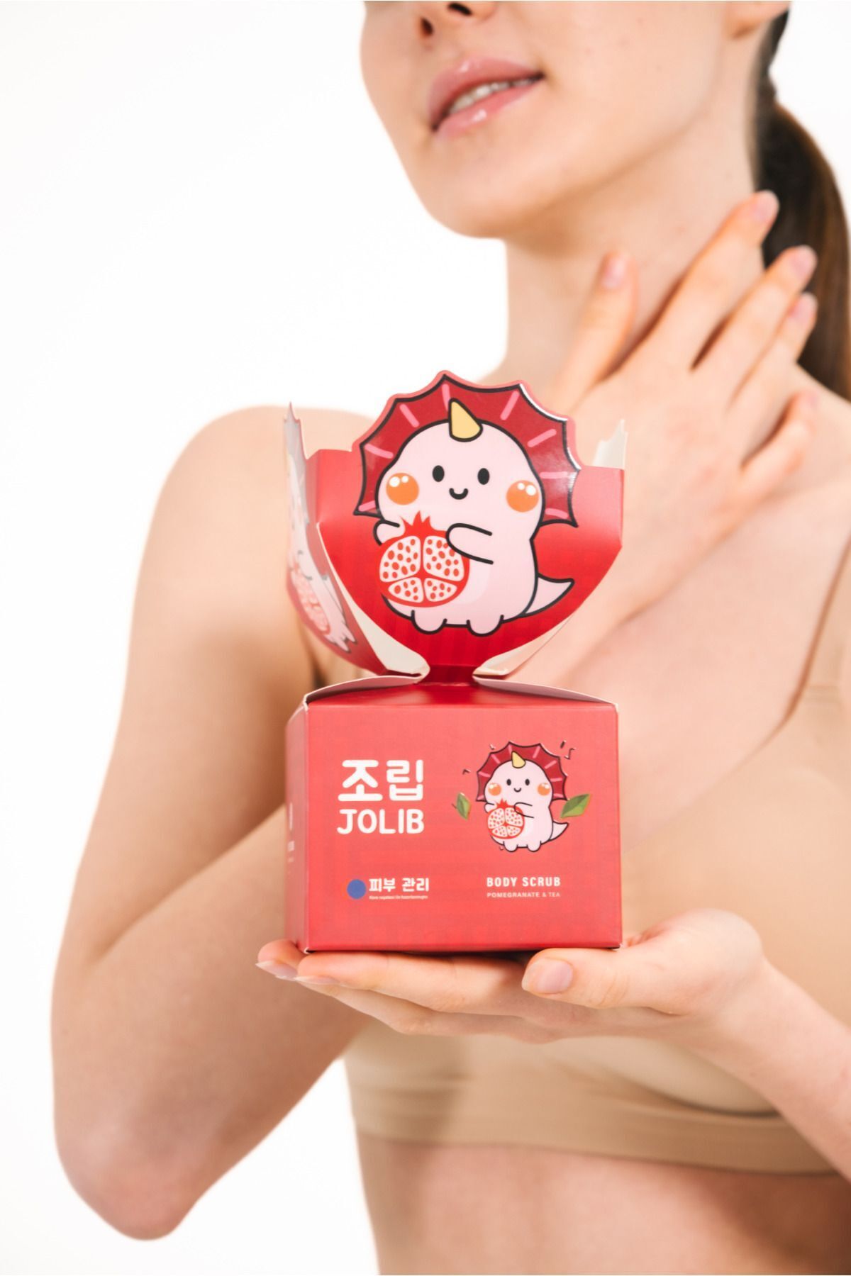 Jolib Body Scrub - Besleyici, Arındırıcı ve Nemlendirici Vücut Peelingi (Eşsiz Nar Çayı Kokusuyla) Cildinizi şımartacak ve taze bir dokunuş kazandıracak olan Jolib Body Scrub, eşsiz Nar Çayı kokusuyla banyo rutininizi keyifli bir deneyime dönüştürür. Bu besleyici, arındırıcı ve nemlendirici vücut peelingi, cildinizi ölü hücrelerden arındırırken derinlemesine nemlendirir ve yumuşak, pürüzsüz bir cilt sağlar. Özellikler: Besleyici ve Nemlendirici:Zengin içerikleriyle cildinizi besler ve derinlemesine nemlendirir, kuruluğu önleyerek cildin doğal nem dengesini korur.