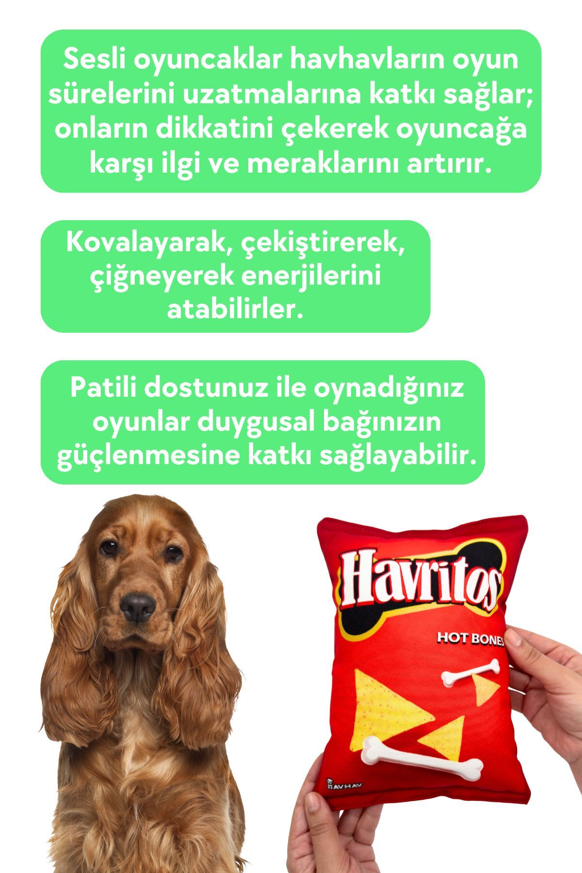 Havritos Peluş Cips, Eğlenceli Tasarımı ile Patili Dostların En Sevdiği Oyun Arkadaşı Olmaya Geliyor! Hışırtı Sesli: İçindeki hışırtı sesi sayesinde oyun sırasında ortaya çıkan sesler, dikkatini çekerken zihinsel mesafelerini artırabilir.
