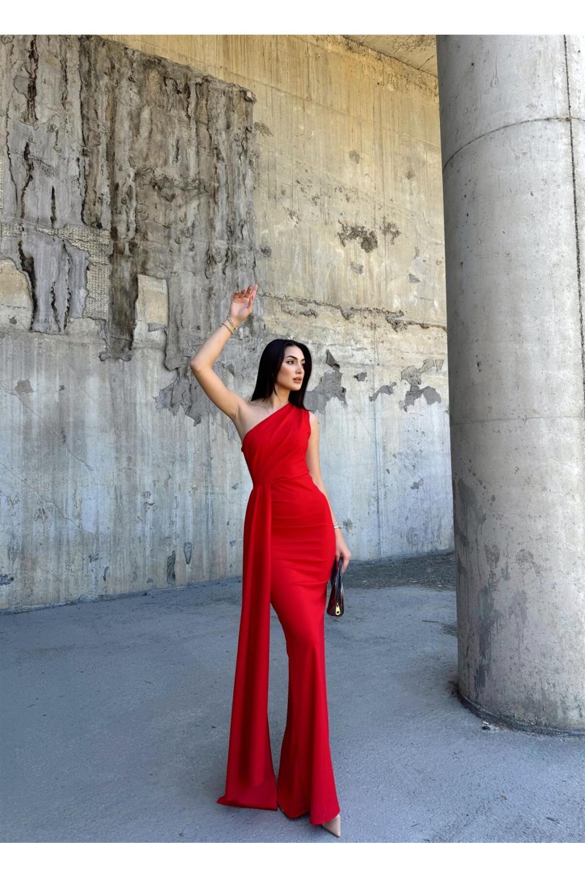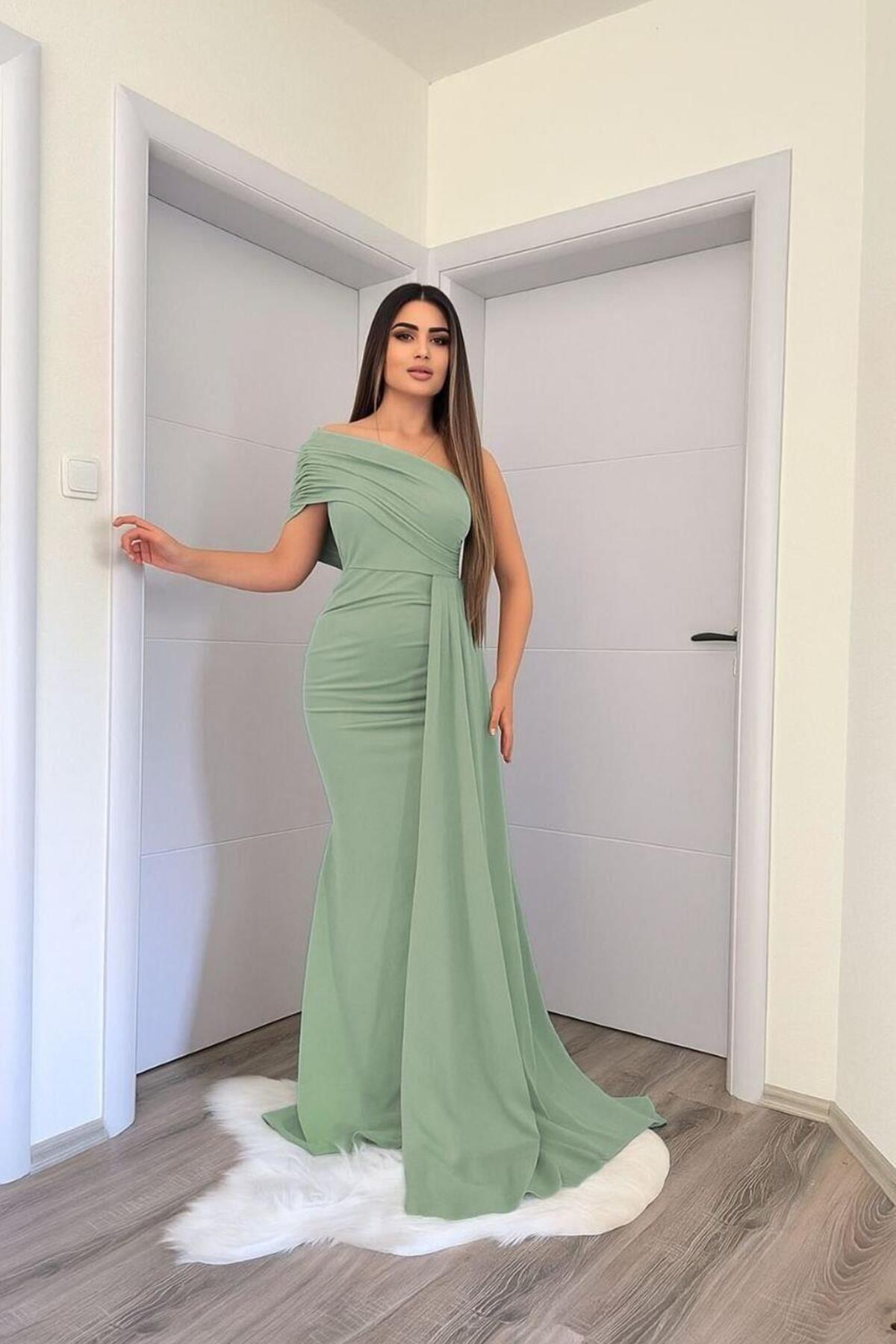 Zümrüt rengiyle dikkat çekici ve sofistike bir görünüm kazandırırken, tek omuz detayıyla feminen çizgiler ön plana çıkar..