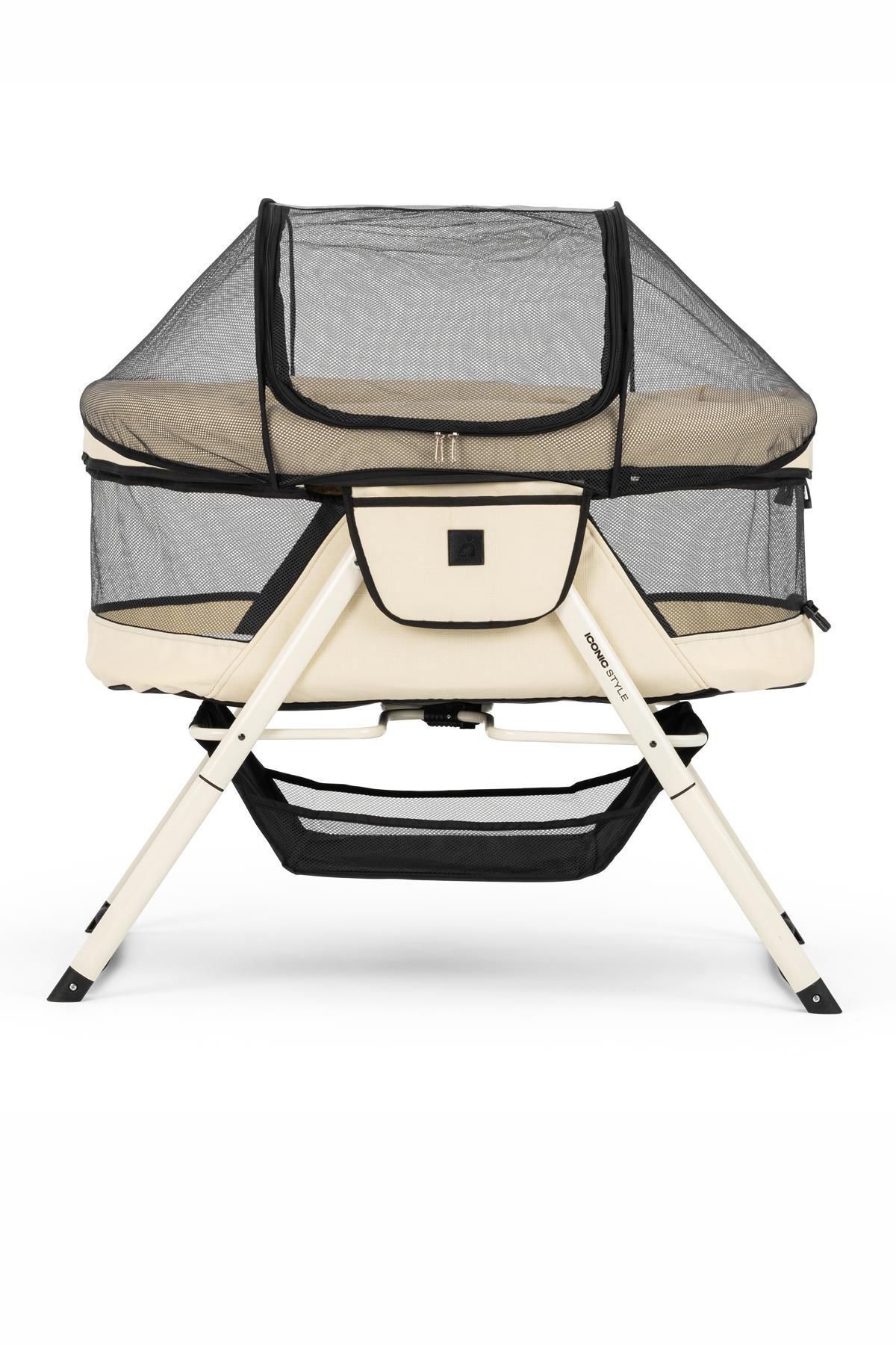Wellgro katlanır ve sallanabilir alüminyum beşik portatif yapısı sayesinde hiçbir kurulum gerektirmeden kullanıma hazır olarak kutusunda çıkar. Sadece sallanma ayaklarını takmanız yeterlidir. 3 cm sünger yatak dahildir. Dilediğiniz yere götürebilirsiniz. Tatilde, yazlıkta veya seyahatlerinizde bebeğiniz kendi beşiğinin konforunu yaşamaya devam edebilir. Özel tasarım ayaklarını kolayca çevirerek sallanma veya sabit durma pozisyonuna getirilebilir. Alüminyum gövde ürüne hem hafiflik katmakla beraber daha uzun kullanım imkanı sunar. Reflü yatağı pozisyonuna geçebilme özelliği sayesinde bebeğinizin başını koyduğu yerin yüksekliğini artırabilirsiniz. Cibinlik mevcuttur. Dilediğinizde kullanabilirsiniz. Fermuarlı kumaşı kolayca çıkarılıp yıkanabilir. Çocuğunuz beşiğin içindeyken rahatça görebilmenizi sağlayan fileli tasarım. 15 kg’ a kadar rahatça kullanılabilir. Özel taşıma çantası hediyeli. Ürünün Dıştan Ölçüleri: Y x E x B: 86 x 60 x 96 cm