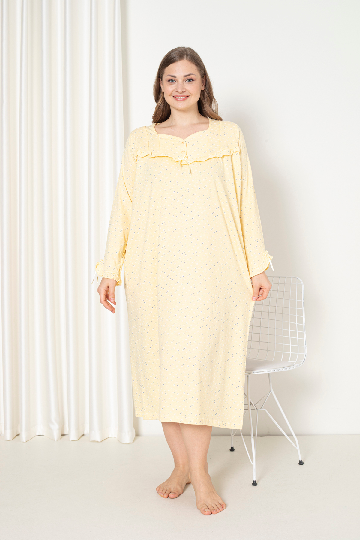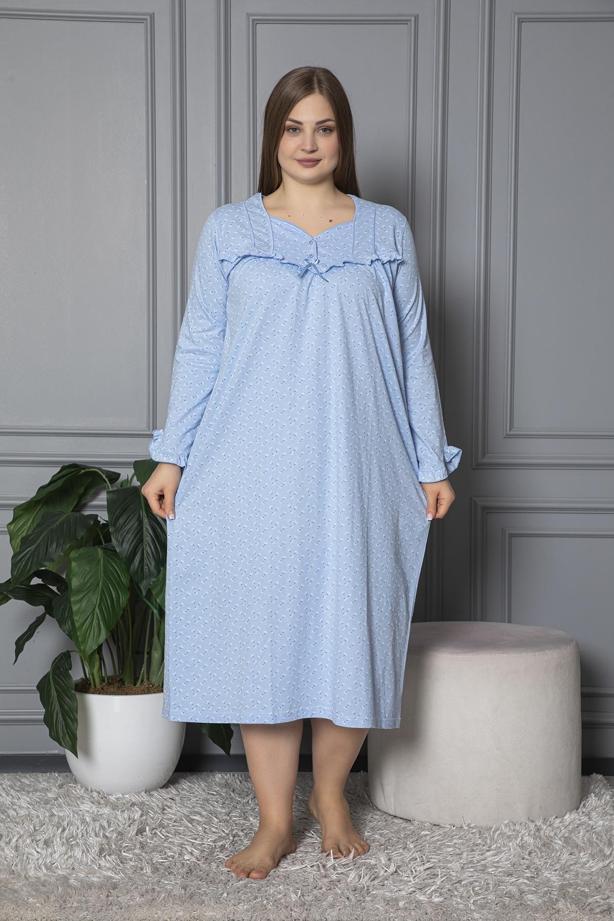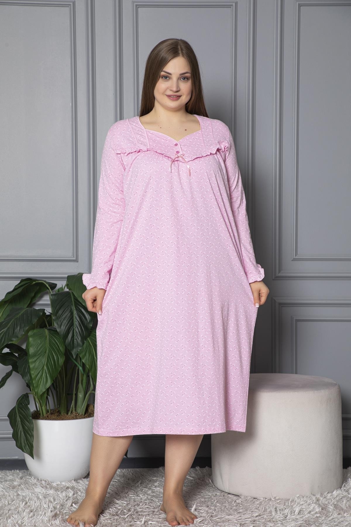 %100 pamuklu kumaşı ile cildinize nefes aldıran ve doğal bir yumuşaklık sunan büyük beden gecelik, tüm yaş gruplarına hitap eder