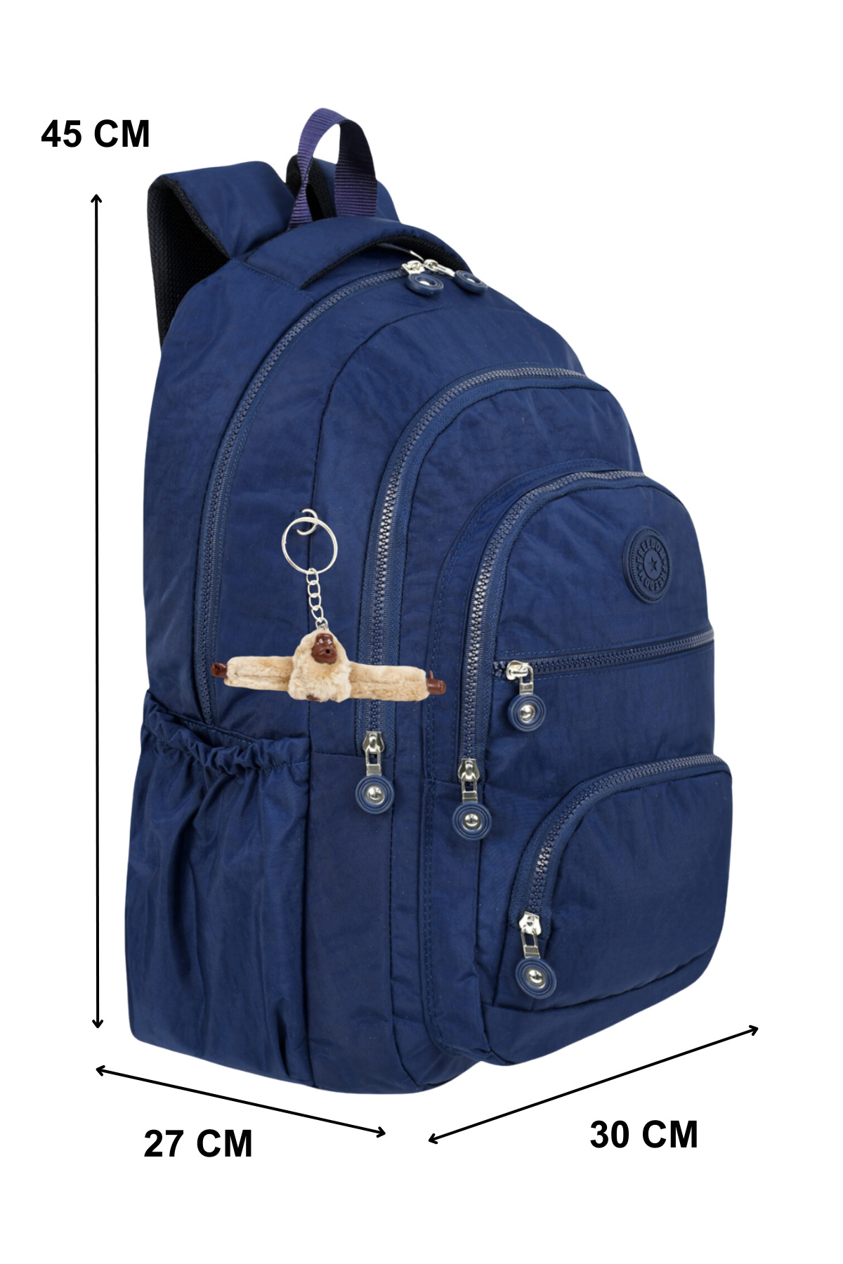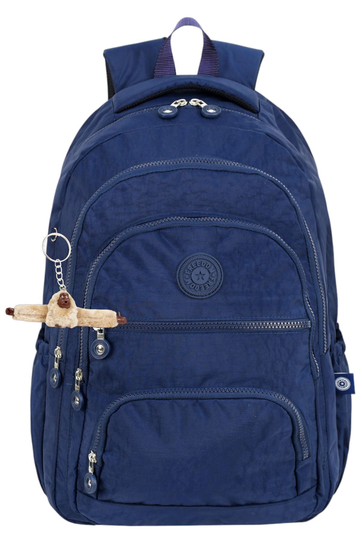 Lüx Krinkıl Kumaş Lise Ve Ortaokul Sırt Çantası, Krinkıl Okul Çantası, Maymun Anahtarlık Hediyeli