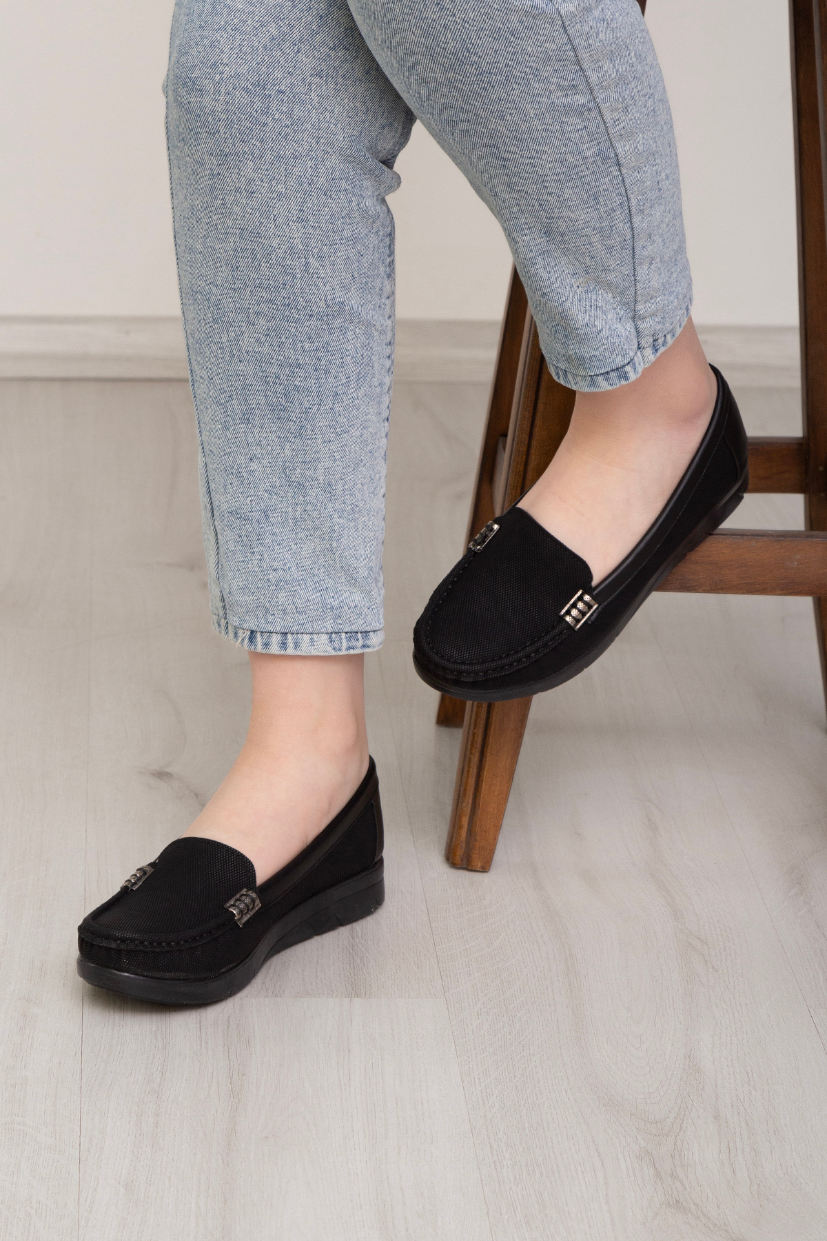 Rahatlık ve şıklığı bir arada sunan düz topuklu tasarım, günlük kullanım için idealdir