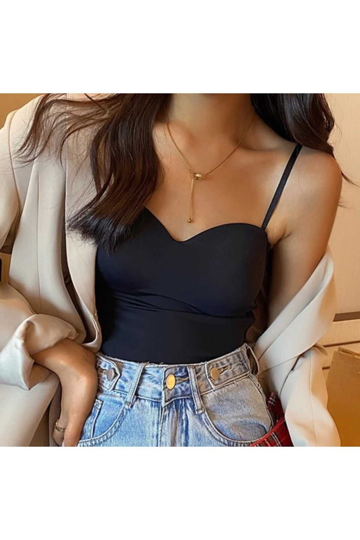 - Straplez yaka tipi ile omuzları serbest bırakarak rahat bir kullanım sunar
