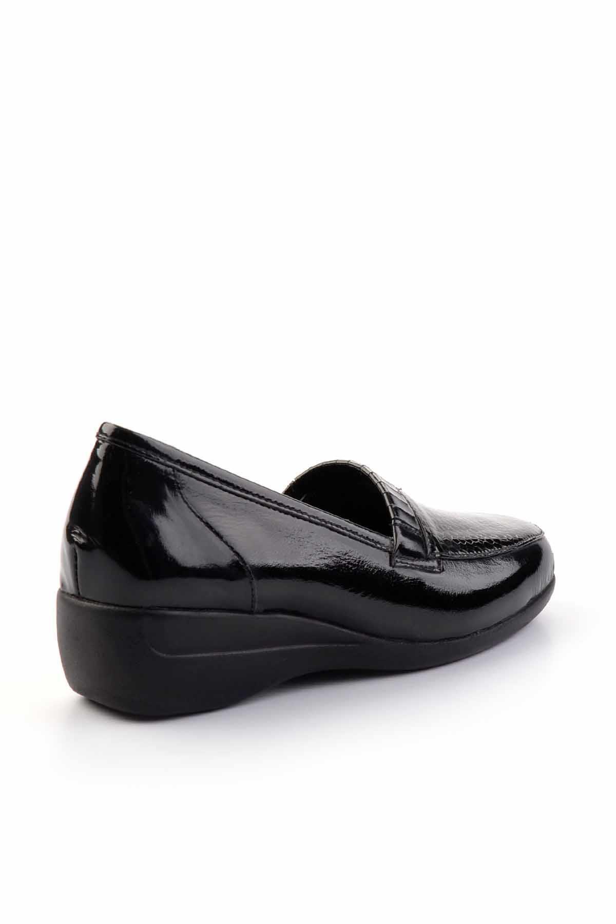 Siyah Rugan Kroko Hakiki Deri Kadın Klasik Ayakkabı K01531123411