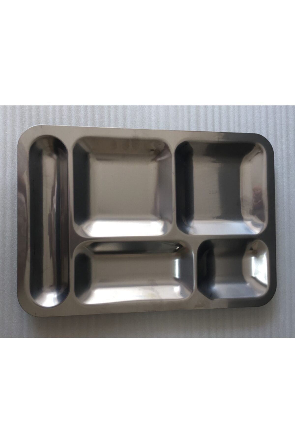– 10 Adet Yemek Tabldot Paslanmaz Krom - Tabildot Yemekhane Tepsisi - Metal Servis Tabağı