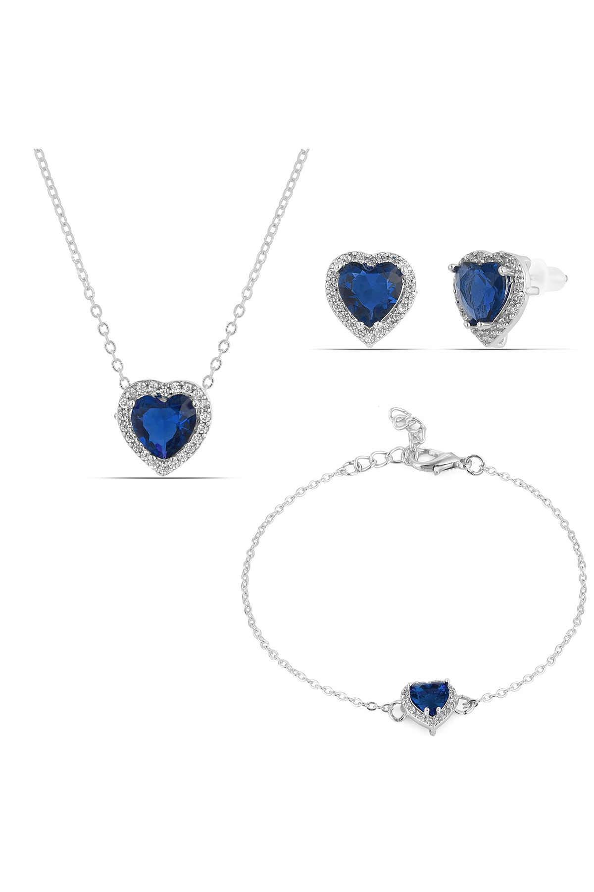 Yapısı: bijuteriZincir Uzunluğu: 42 cm 2 adet Bileklik Maden Rengi: beyazTaş Rengi : lacivertBileklik Modeli: ayarlanabilir model Özel Kalpli Kutuda Yollanmaktadır.Küpe : nokta küpeTakı setleri, birçok kadının giyim tarzını tamamlayan popüler aksesuarlardan biridir.