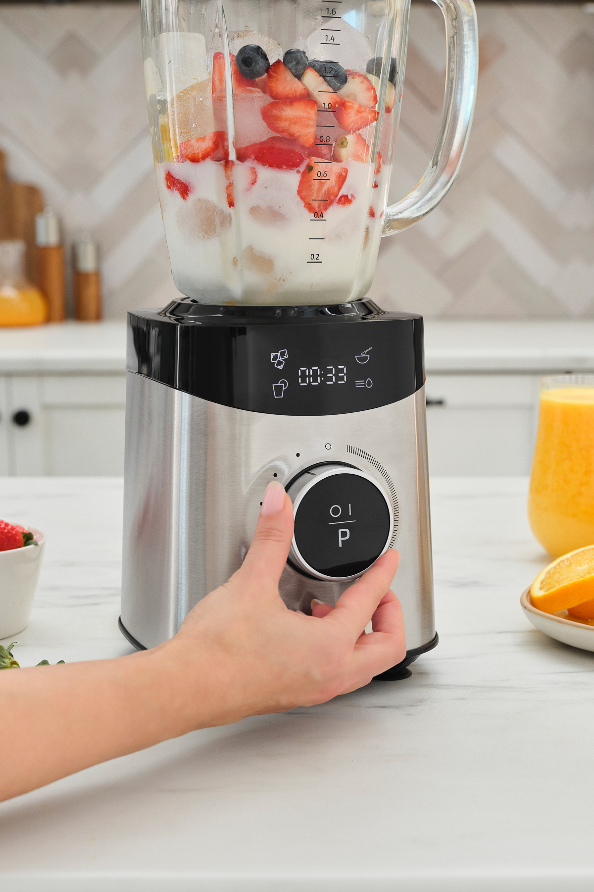 Blender, modern dijital dokunmatik paneli ile kullanım kolaylığı sağlar. Parmaklarınızın ucunda kontrol imkanı sunan panel sayesinde, 6 programlı akıllı sistemle malzemeleriniz için ideal hız ve süre otomatik olarak ayarlanır. Buz, Smoothie, Manuel ve Salsa programları ile her tarifiniz kusursuz olur. Ani güç artışı gereken durumlarda Pulse fonksiyonu ile ekstra hız desteği sunar.