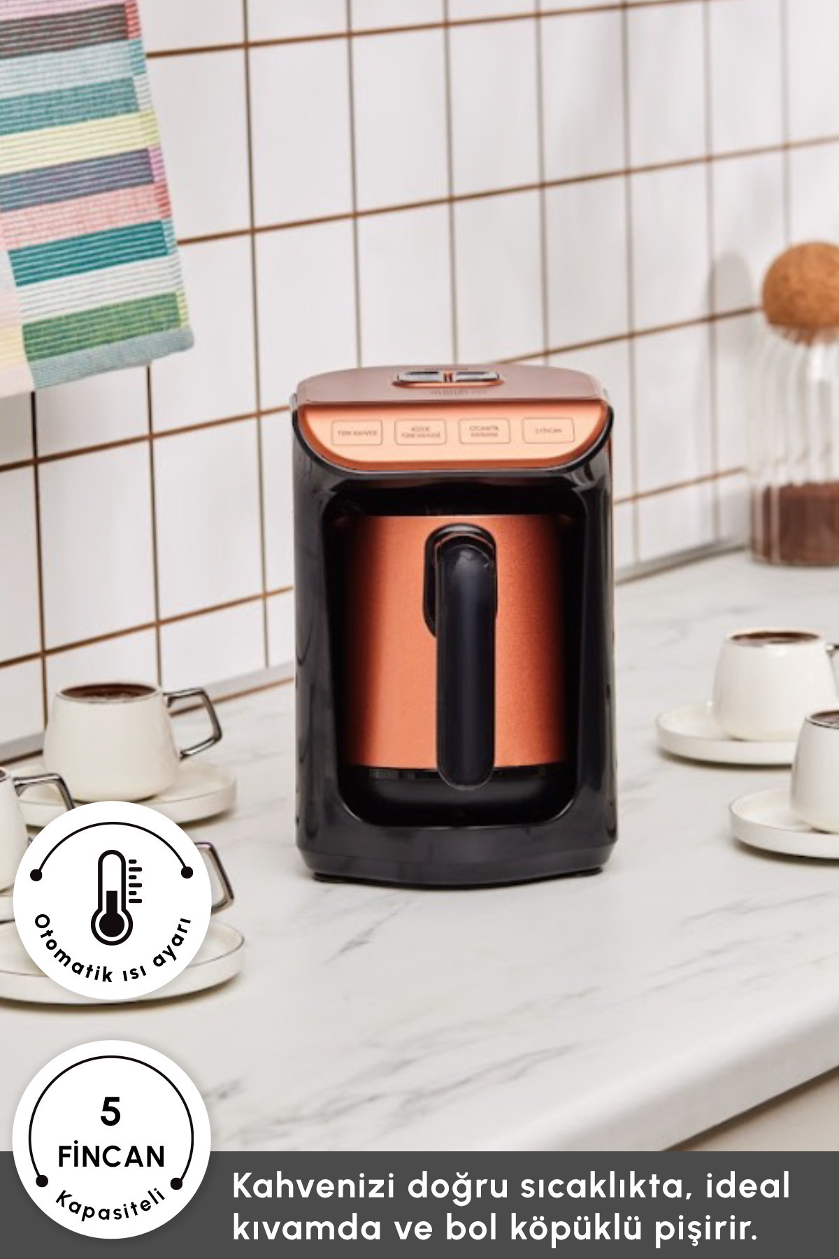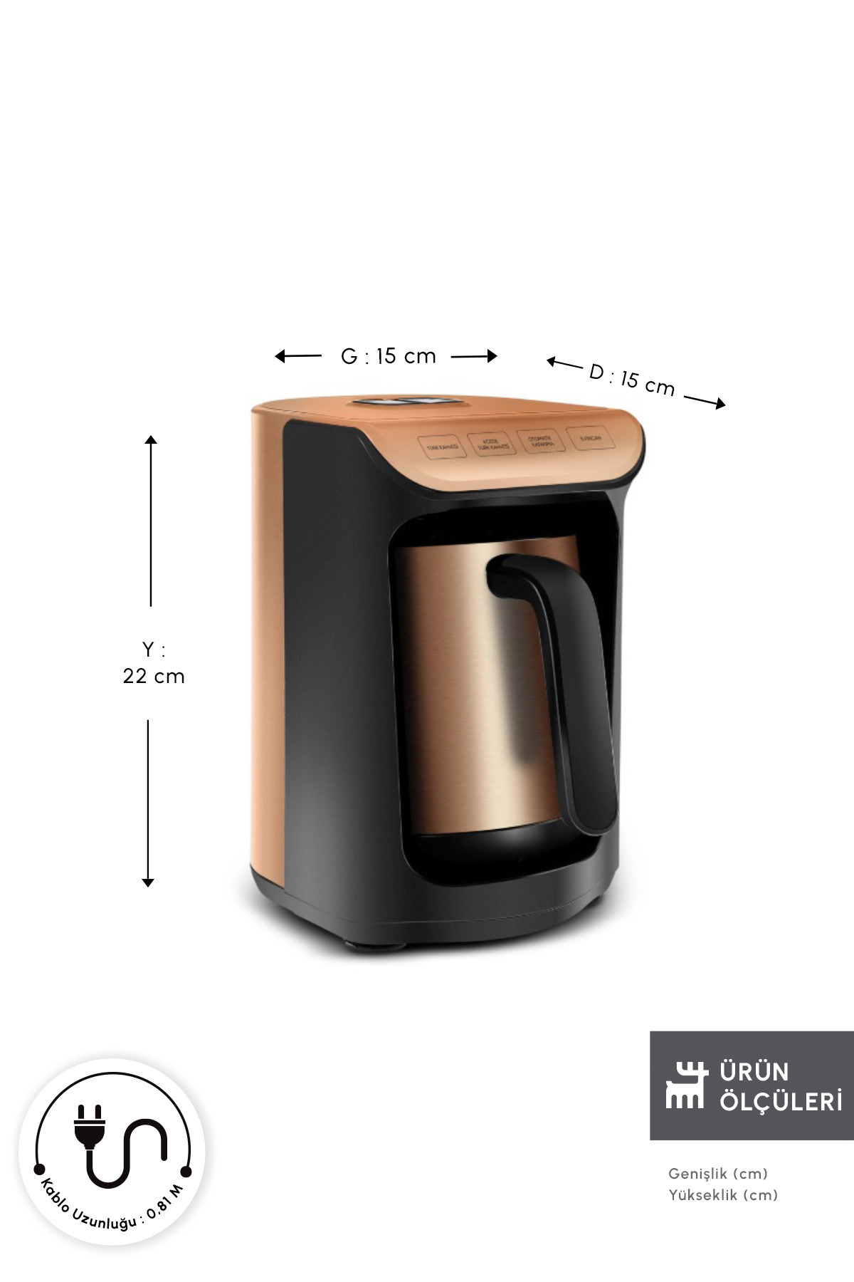 Hatır Köz Steel Çelik Cezveli Türk Kahve Makinesi 5 Fincan Kapasiteli Bronz