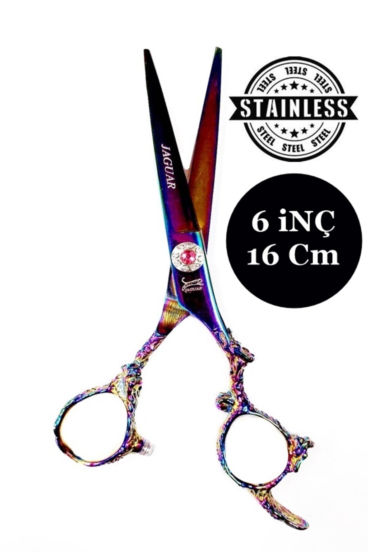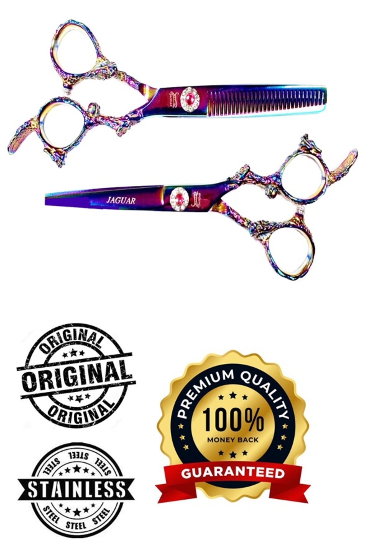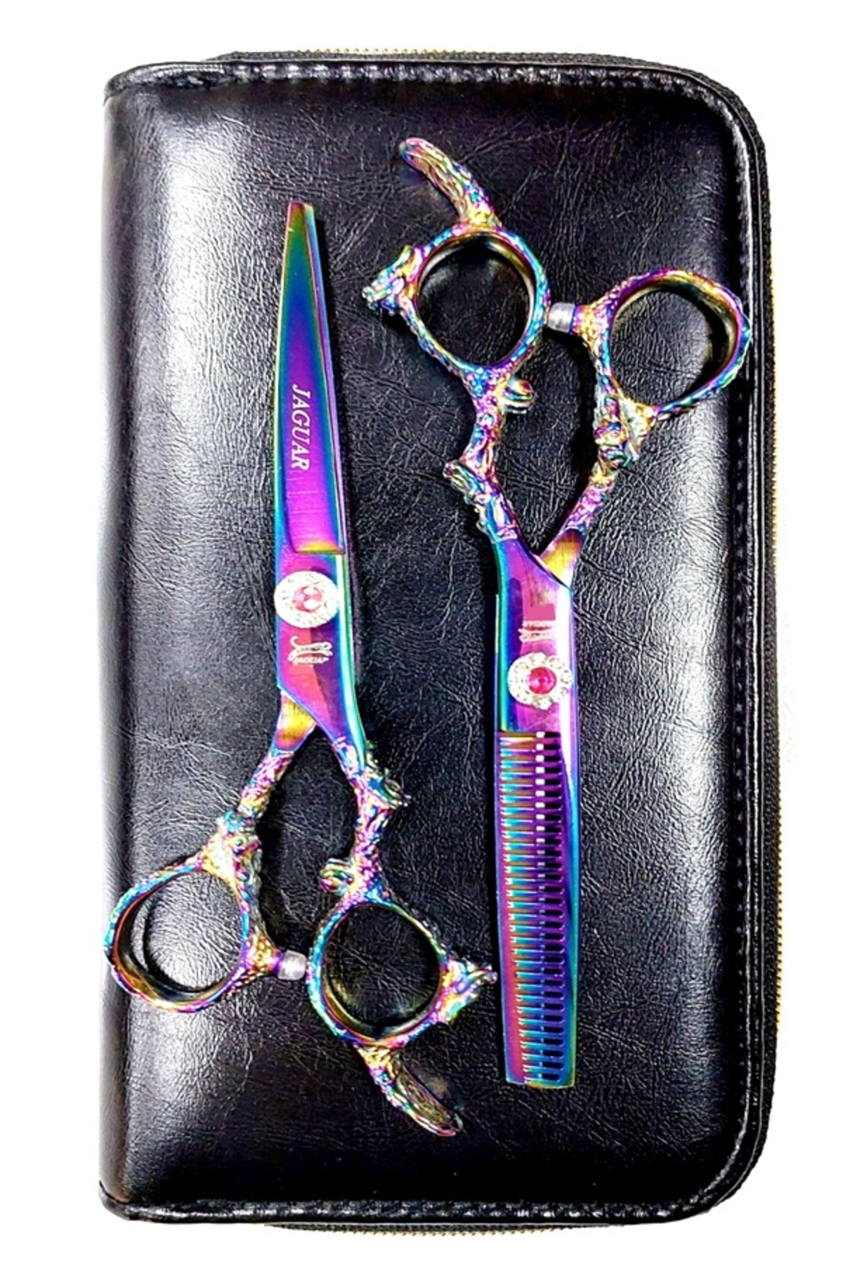 Jaguar İşlemeli Kuaför Saç Kesim Makas Seti Ultra Lüks Deri Çantalı Çelik Makas Seti XLJ60
