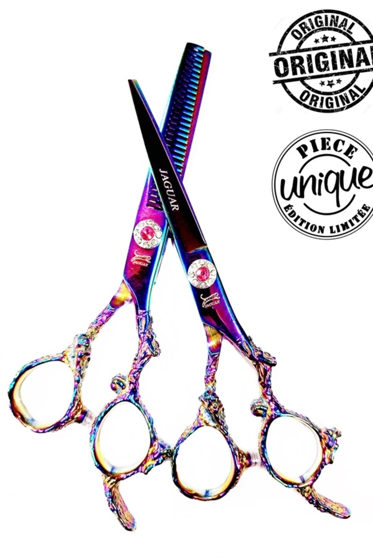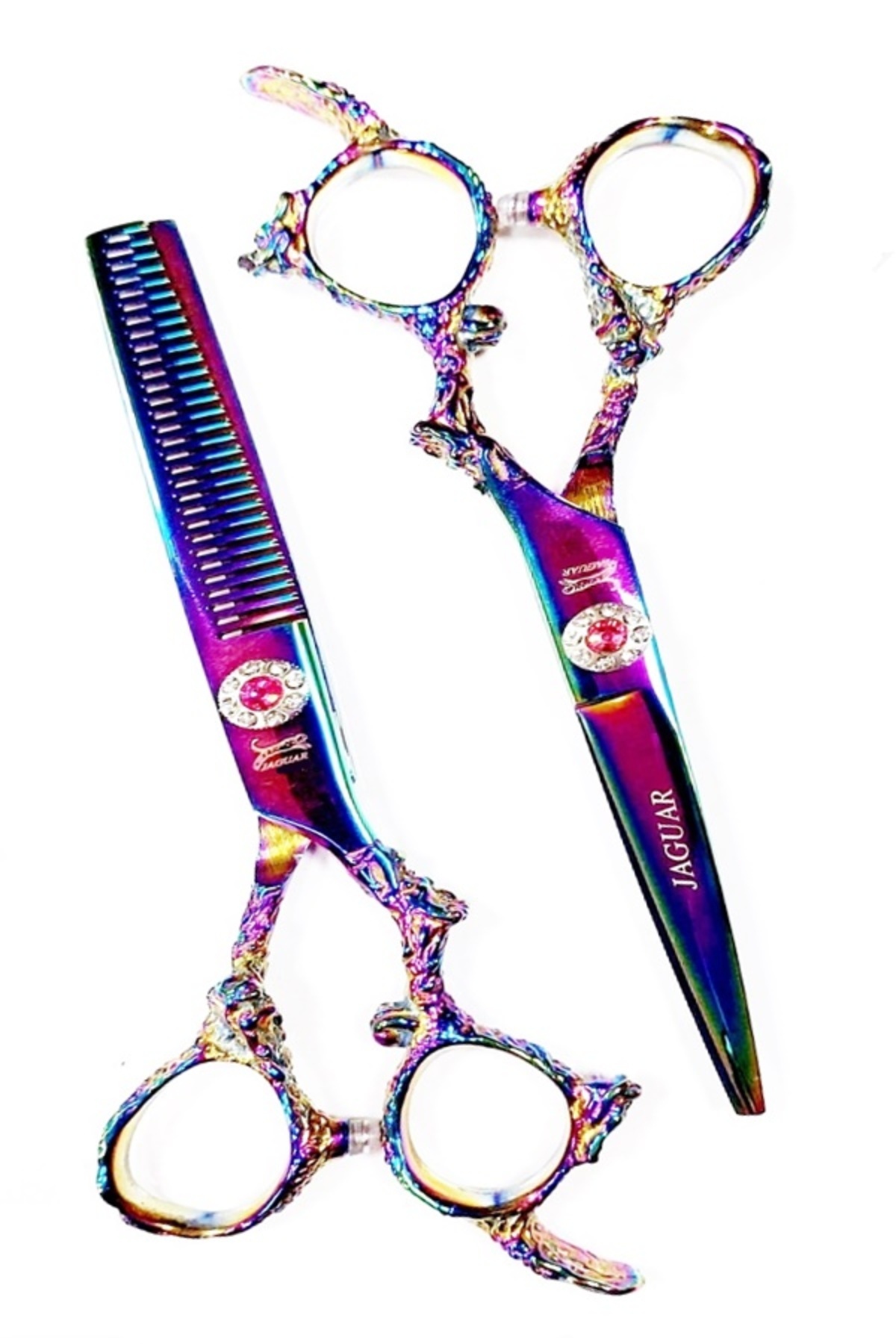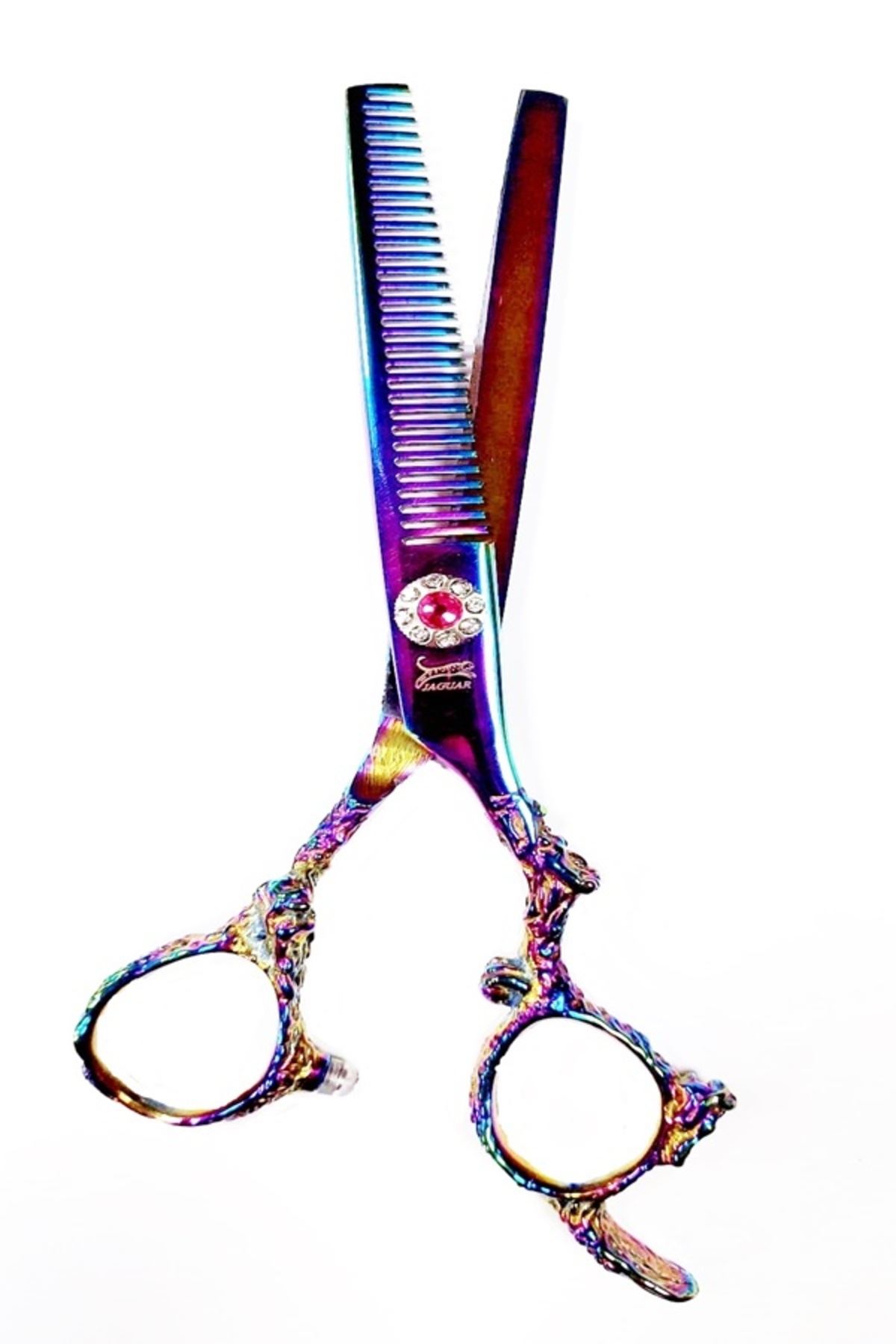Jaguar İşlemeli Kuaför Saç Kesim Makas Seti Ultra Lüks Deri Çantalı Çelik Makas Seti XLJ60