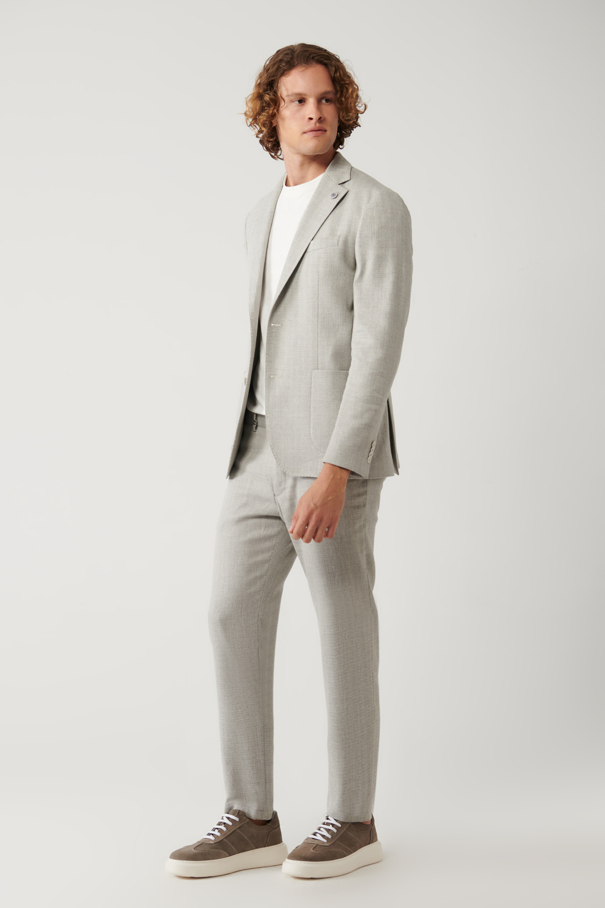 Mono Yaka, Astarsız, Keten karışımlı, Takma cepli, Çift yırtmaçlı, Dokuma kumaş Comfort Slim Fit Takım Ceketi