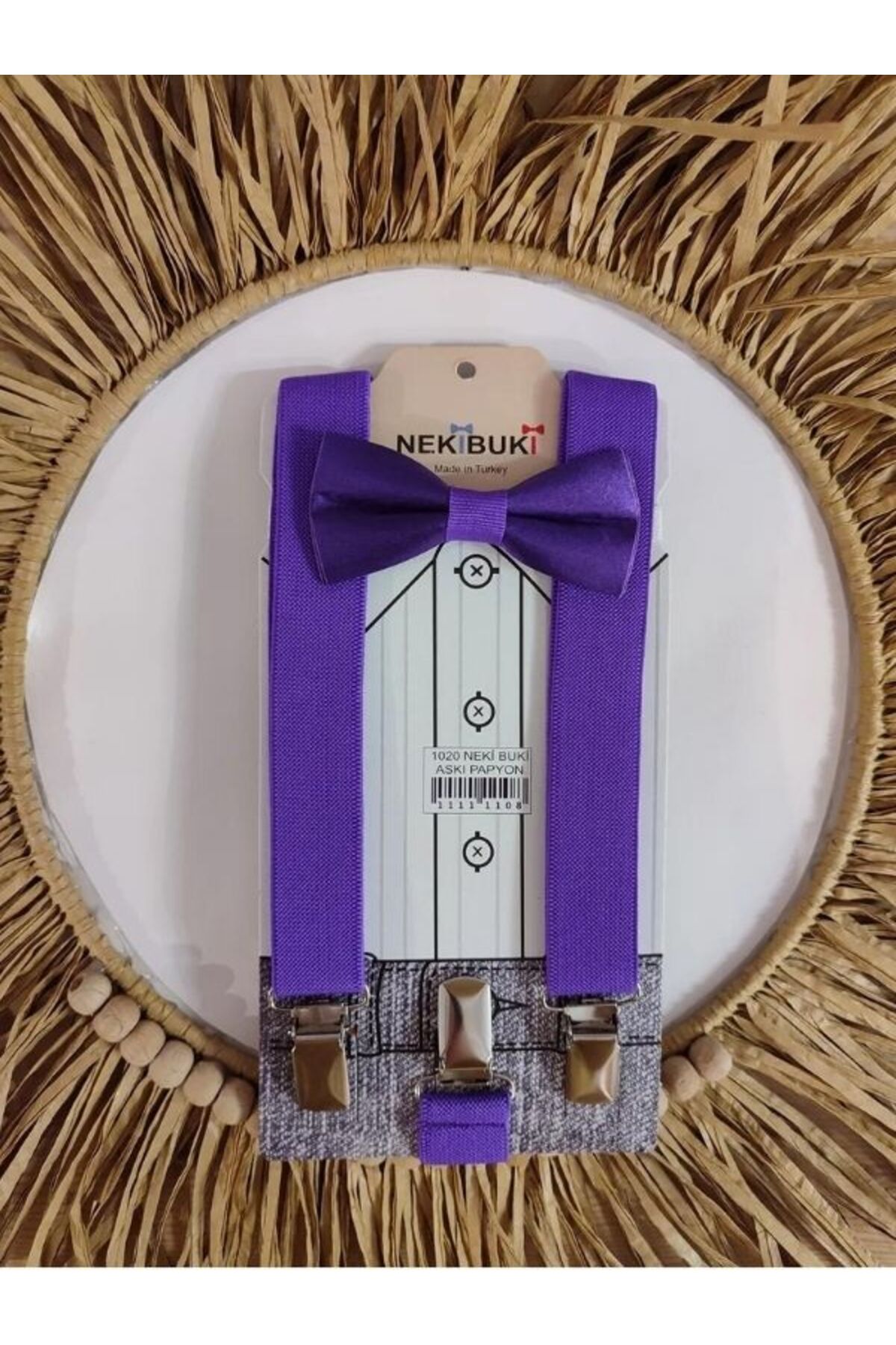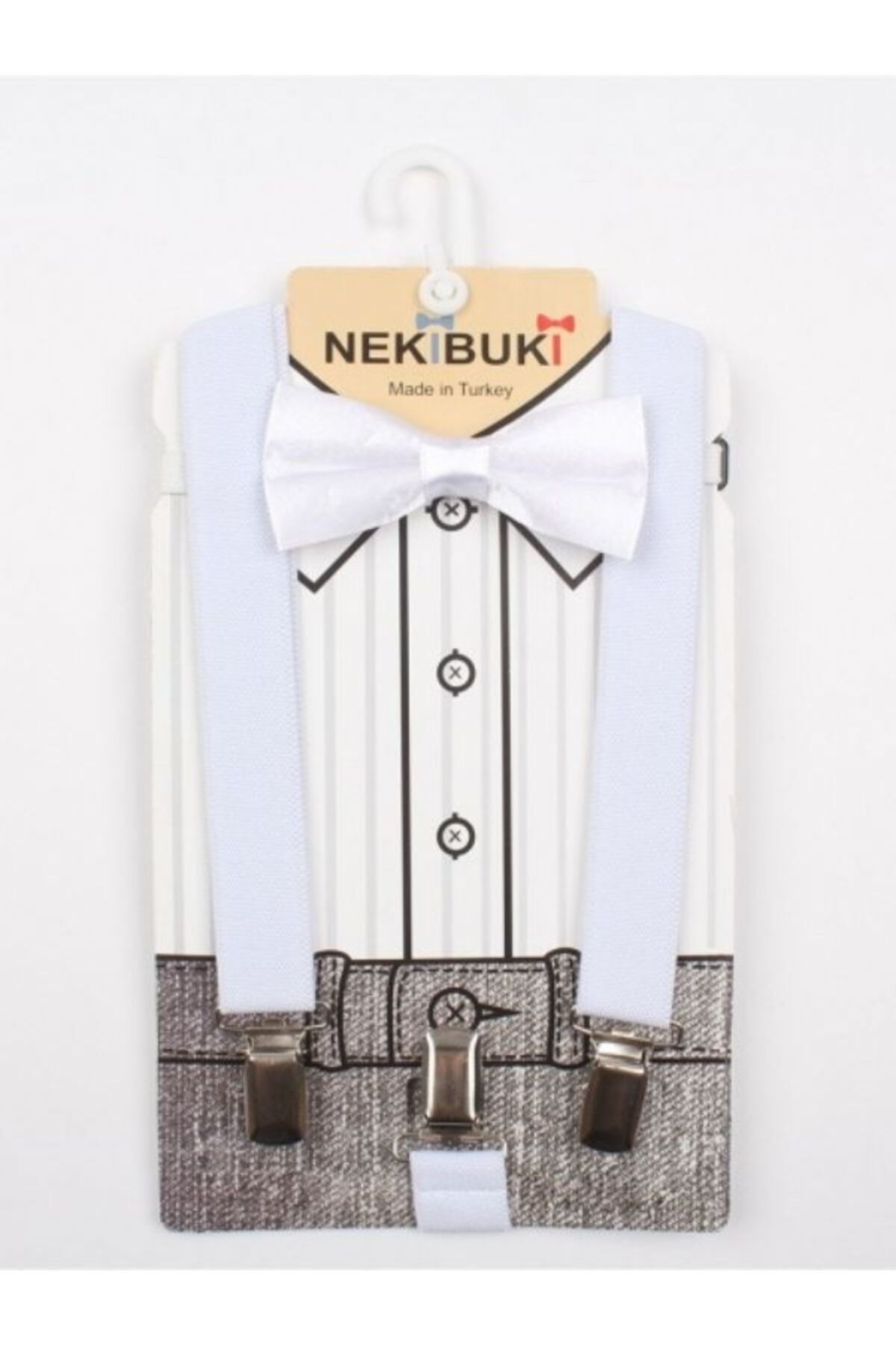 Çocukların rahatlığı düşünülerek tasarlanmış, tekstil materyalden üretilmiş Bloom store pantolon askı papyon seti, miniklerin konforunu ön planda tutar
