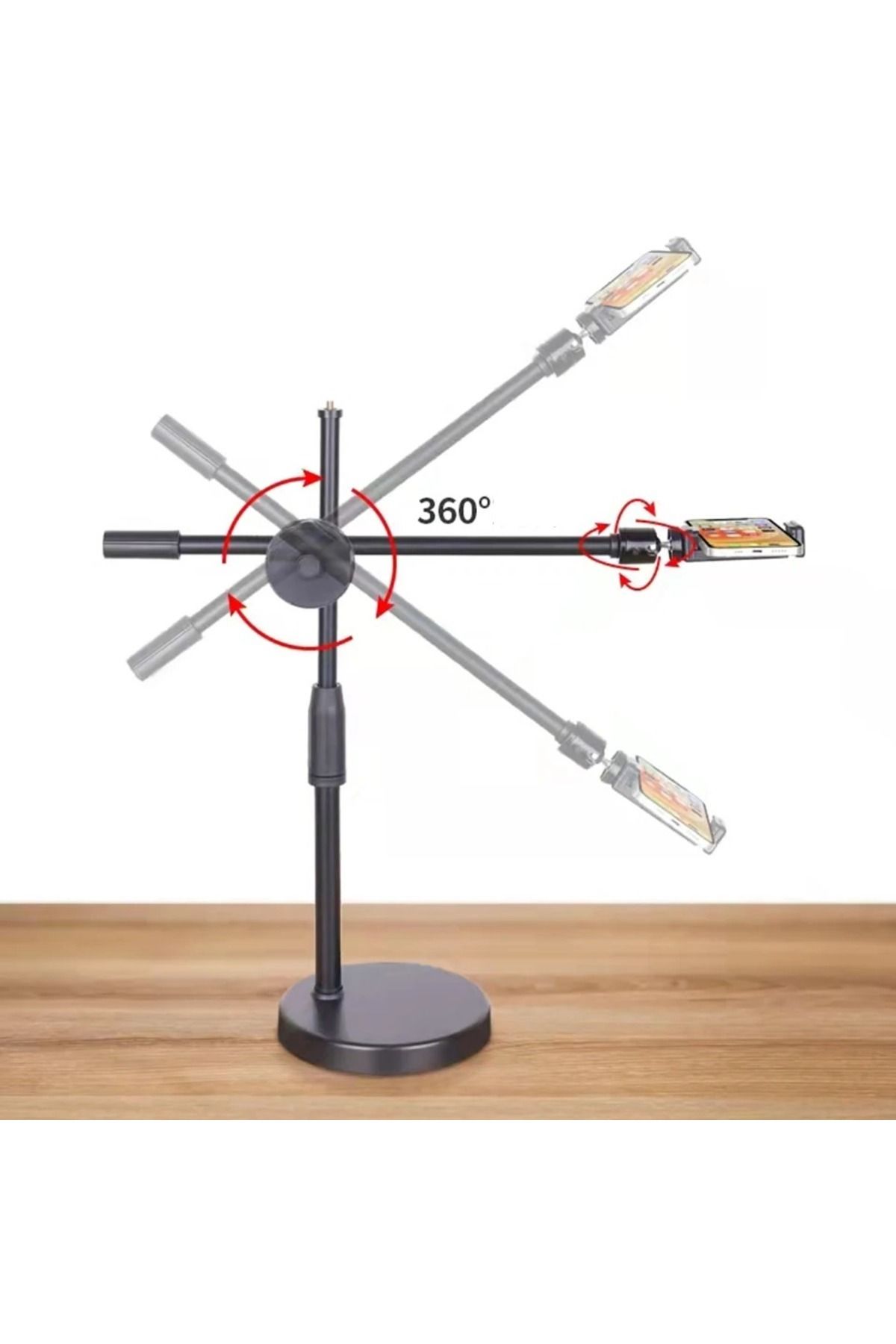 Yatay kol, farklı açılardan çekim için uygun olan 360 derece dönebilir ve sabit çekim için geri çekilebilir ve yenilenebilir.