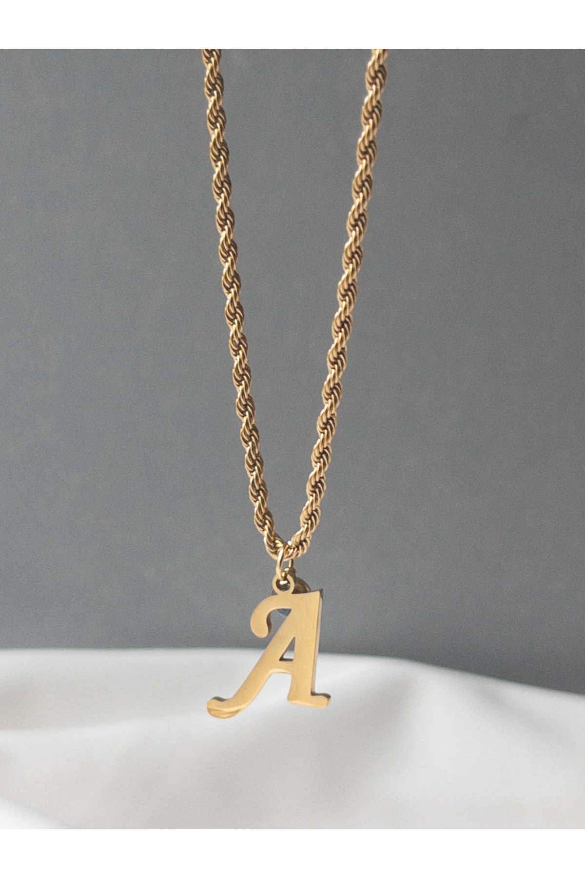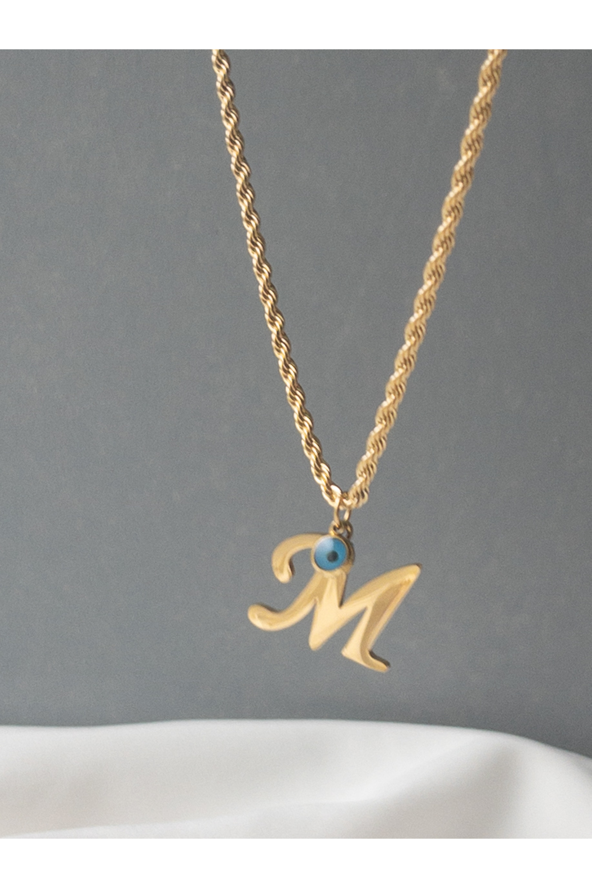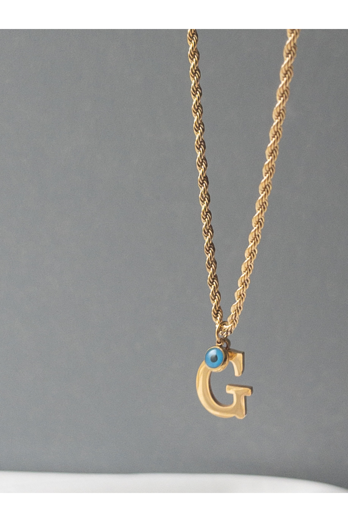 316L Kararmaz Çelik Gold Renk Nazar Boncuklu Uzun Burgu Zincirli Harfli Kadın Kolye