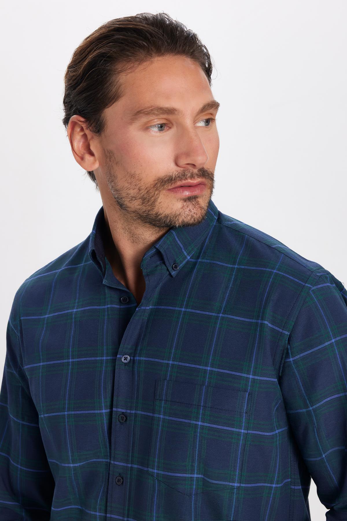 Erkek Regular Fit Klasik Kesim Pamuklu Küçük Kareli Düğmeli Yaka Gömlek