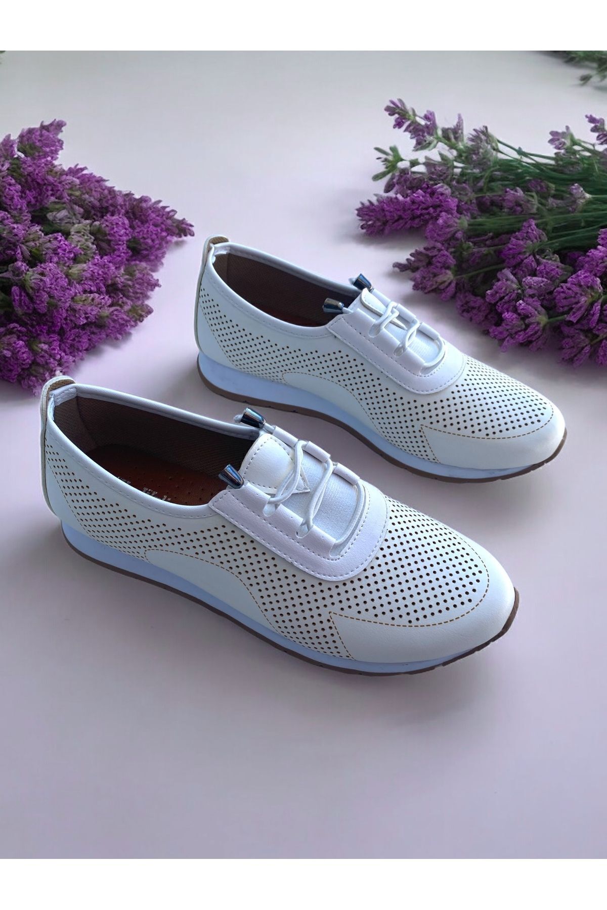 Kadın Bej Ortopedik Delikli & Bağcıklı Günlük Spor Babet, delikli detaylarıyla ayaklarınızın nefes almasını sağlarken, bağcıklı tasarımıyla ayaklarınıza tam uyum sağlıyor