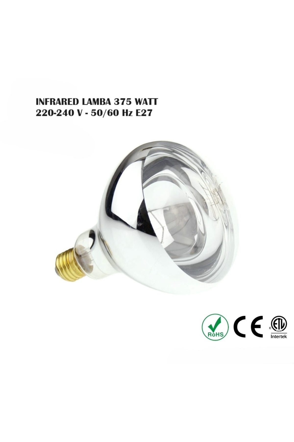 INFRARED ISITICI AMPUL / 375 WATT E–27 STANDART DUY VOLTAJ: 220 / 240 VOLT BOYUTLARI: DUY İLE BİRLİKTE BOY: 18,3 CM, EN: 12,5 CM KÜMESLERDE, BALKONLARDA,BAHÇELERDE , HAYVAN BARINAKLARINDA, SERALARDA , CİVCİV TAVUK VE ÜRETİM ÇİFTLİKLERİNDE, ARAZİLERDEKİ SU DEPOLARINDA,GÜVERCİN KAFESLERİNDE VB