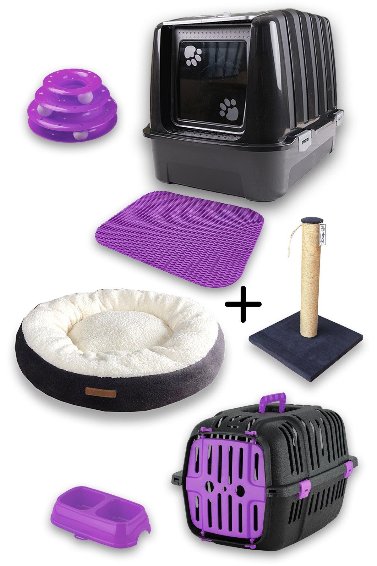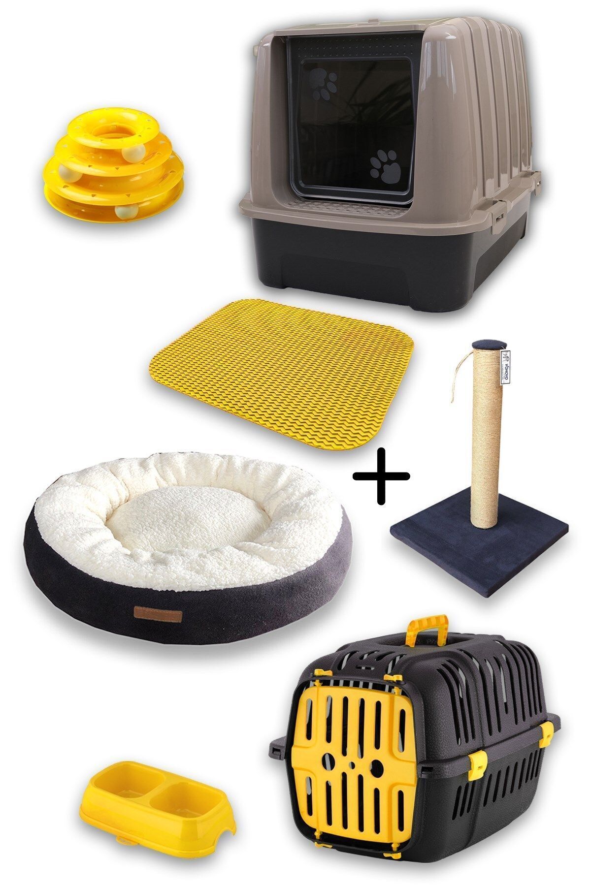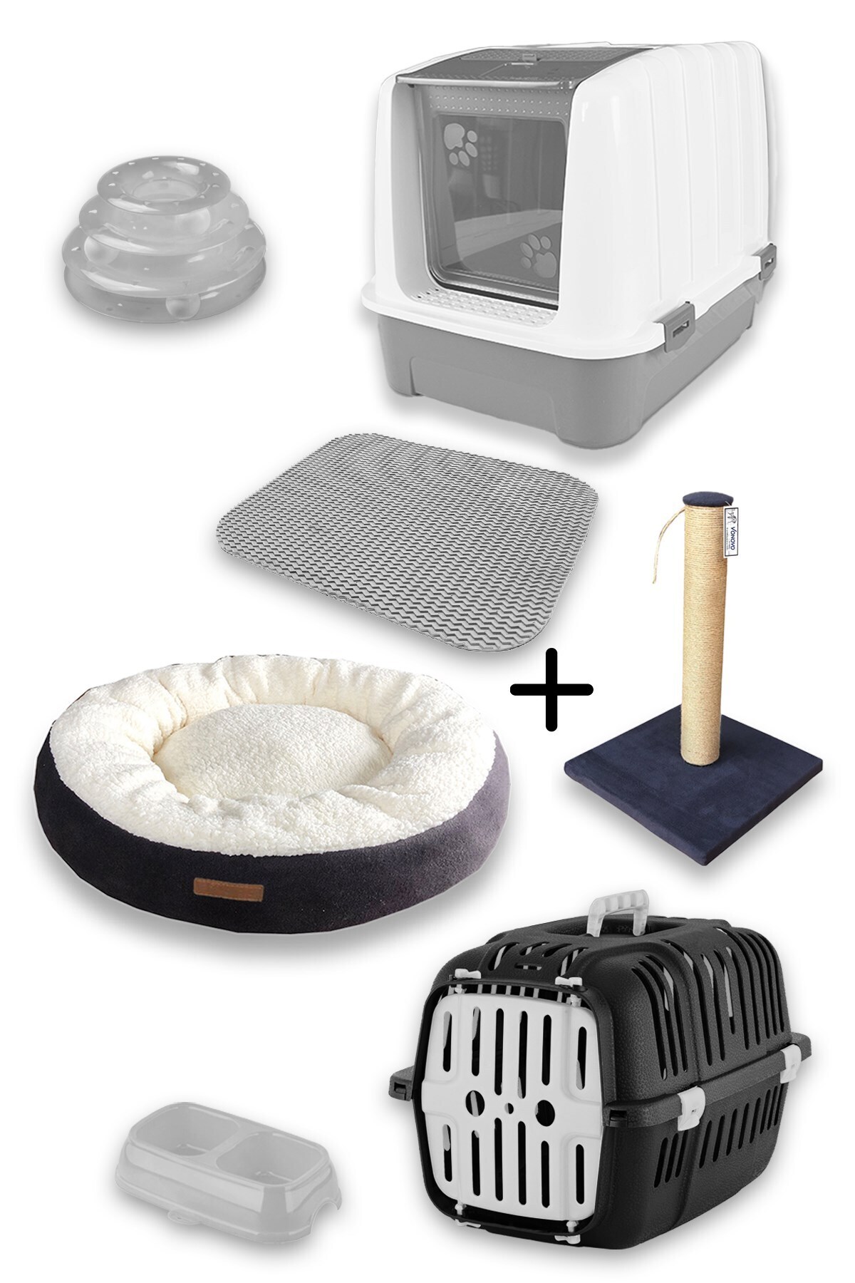 Lüks Kapalı Kedi Tuvaleti Taşıma Sepet Yatak Tırmlama Paspas 3 Katlı Oyunck Kedi Başlangıç Seti-lkt2